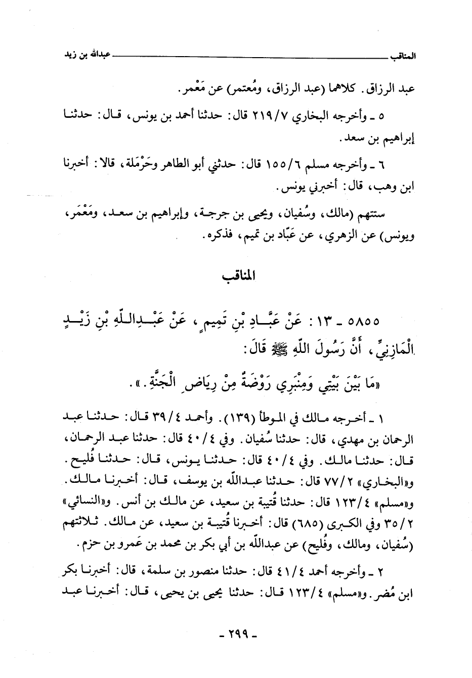 ٥٨٥٥ - عَنْ عَبَّادِ بْنِ تَمِيمٍ عَنْ عَبْدِ اللَّهِ بْنِ زَيْدٍ الْمَازِنِىِّ أَنَّ رَسُولَ اللَّهِ صلى الله عليه وسلم قَالَ: