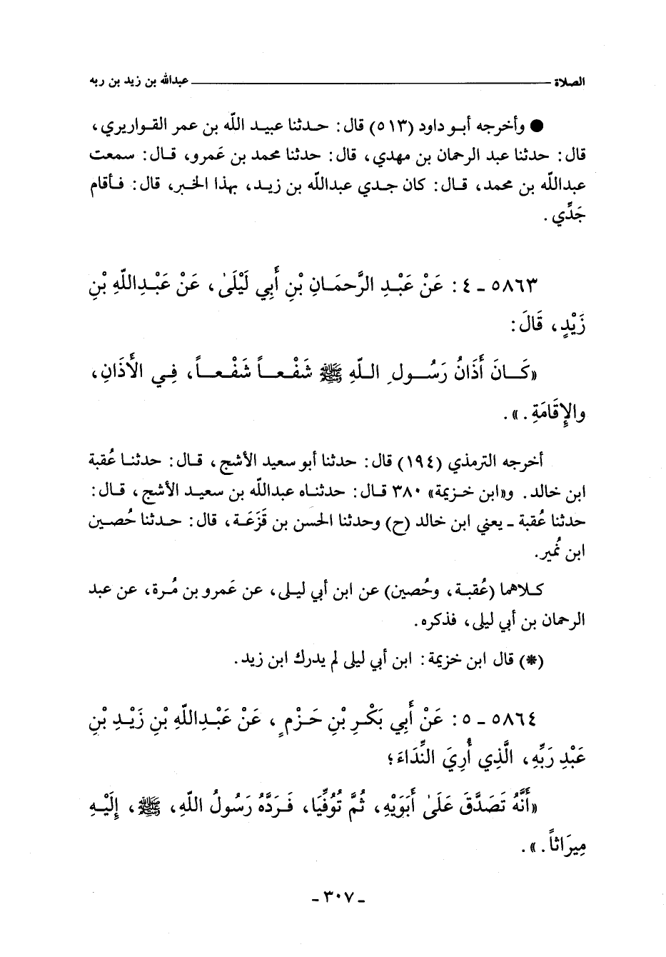 ٥٨٦٣ - عَنْ عَبْدِ الرَّحْمَنِ بْنِ أَبِى لَيْلَى عَنْ عَبْدِ اللَّهِ بْنِ زَيْدٍ قَالَ: