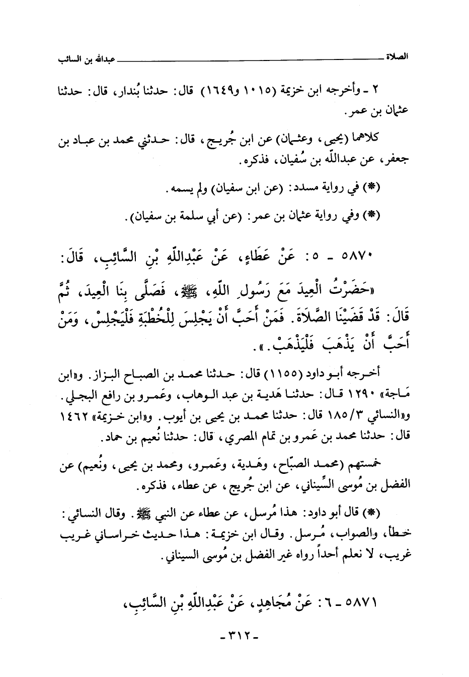 ٥٨٧٠ - عَنْ عَطَاءٍ عَنْ عَبْدِ اللَّهِ بْنِ السَّائِبِ قَالَ: