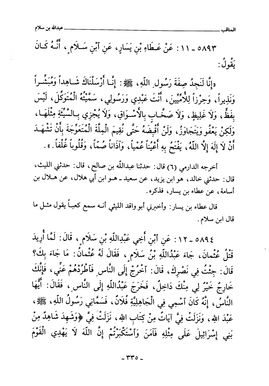 ٥٨٩٣ - عَنْ عَطَاءِ بْنِ يَسَارٍ , عَنِ ابْنِ سَلَامٍ , أَنَّهُ كَانَ يَقُولُ: