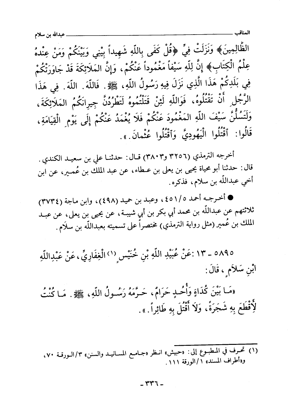 ٥٨٩٥ - عَنْ عُبَيْدِ اللَّهِ بْنِ خُنَيْسٍ الْغِفَارِىِّ عَنْ عَبْدِ اللَّهِ بْنِ سَلَامٍ قَالَ: