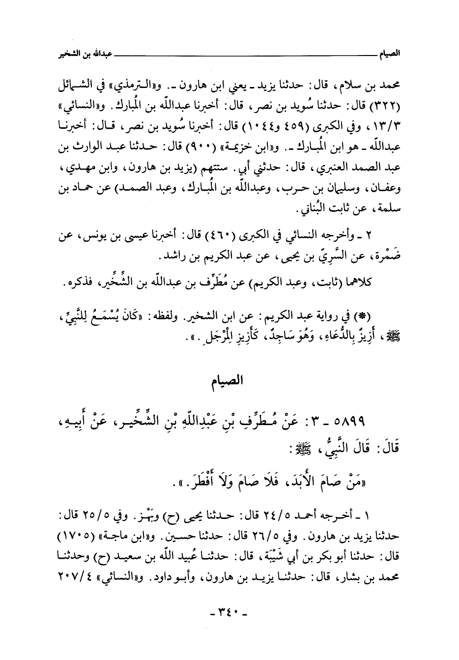٥٨٩٩ - عَنْ مُطَرِّفِ بْنِ عَبْدِ اللَّهِ بْنِ الشِّخِّيرِ عَنْ أَبِيهِ قَالَ قَالَ النَّبِىُّ صلى الله عليه وسلم: