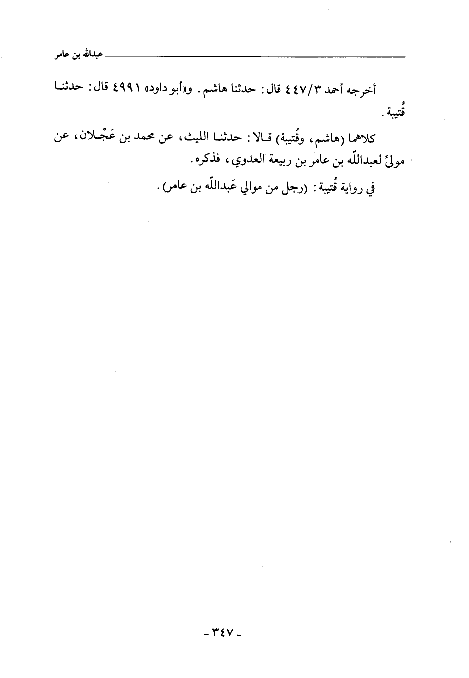 كلاهما (هاشم , وقتيبة) قالا: حدثنا الليث , عن محمد بن عجلان , عن مولى لعبد الله بن عامر بن ربيعة العدوي , فذكره.