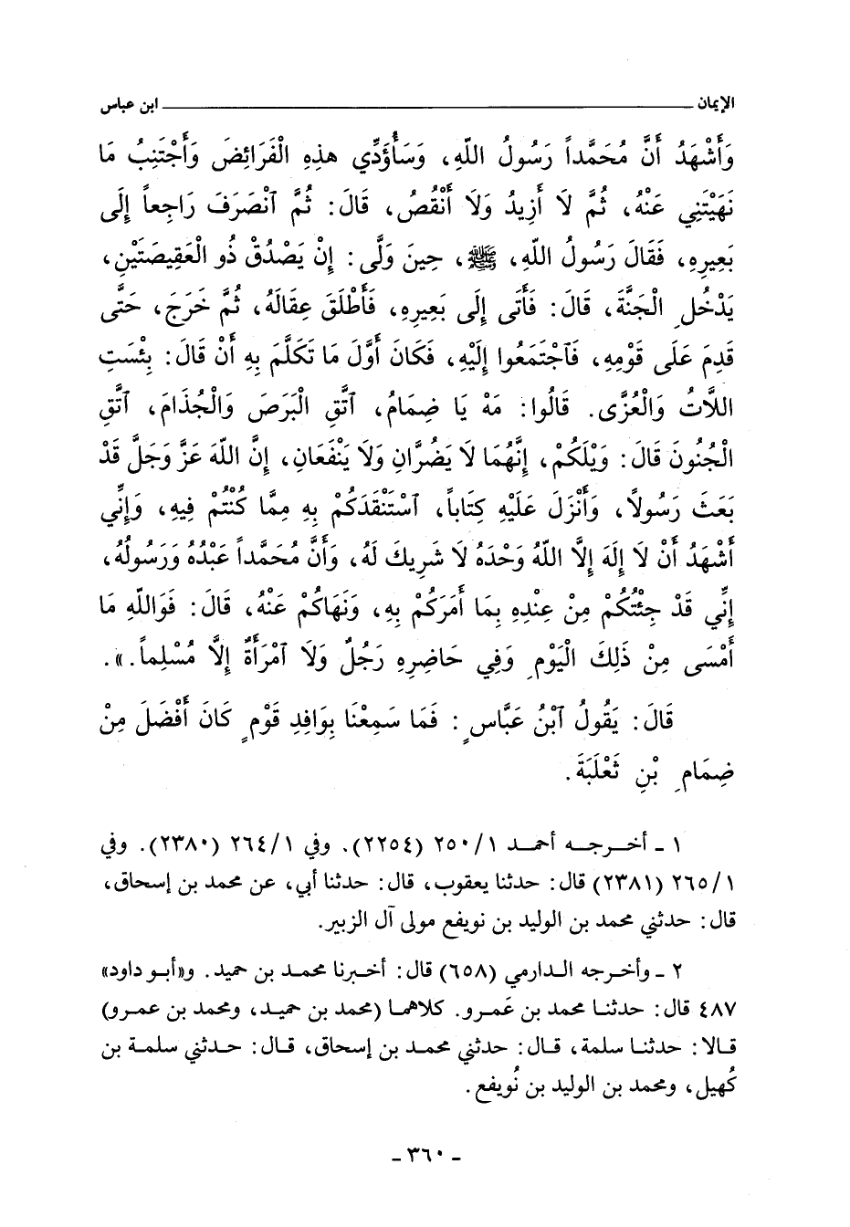 قَالَ: يَقُولُ ابْنُ عَبَّاسٍ: فَمَا سَمِعْنَا بِوَافِدِ قَوْمٍ كَانَ أَفْضَلَ مِنْ ضِمَامِ بْنِ ثَعْلَبَةَ.