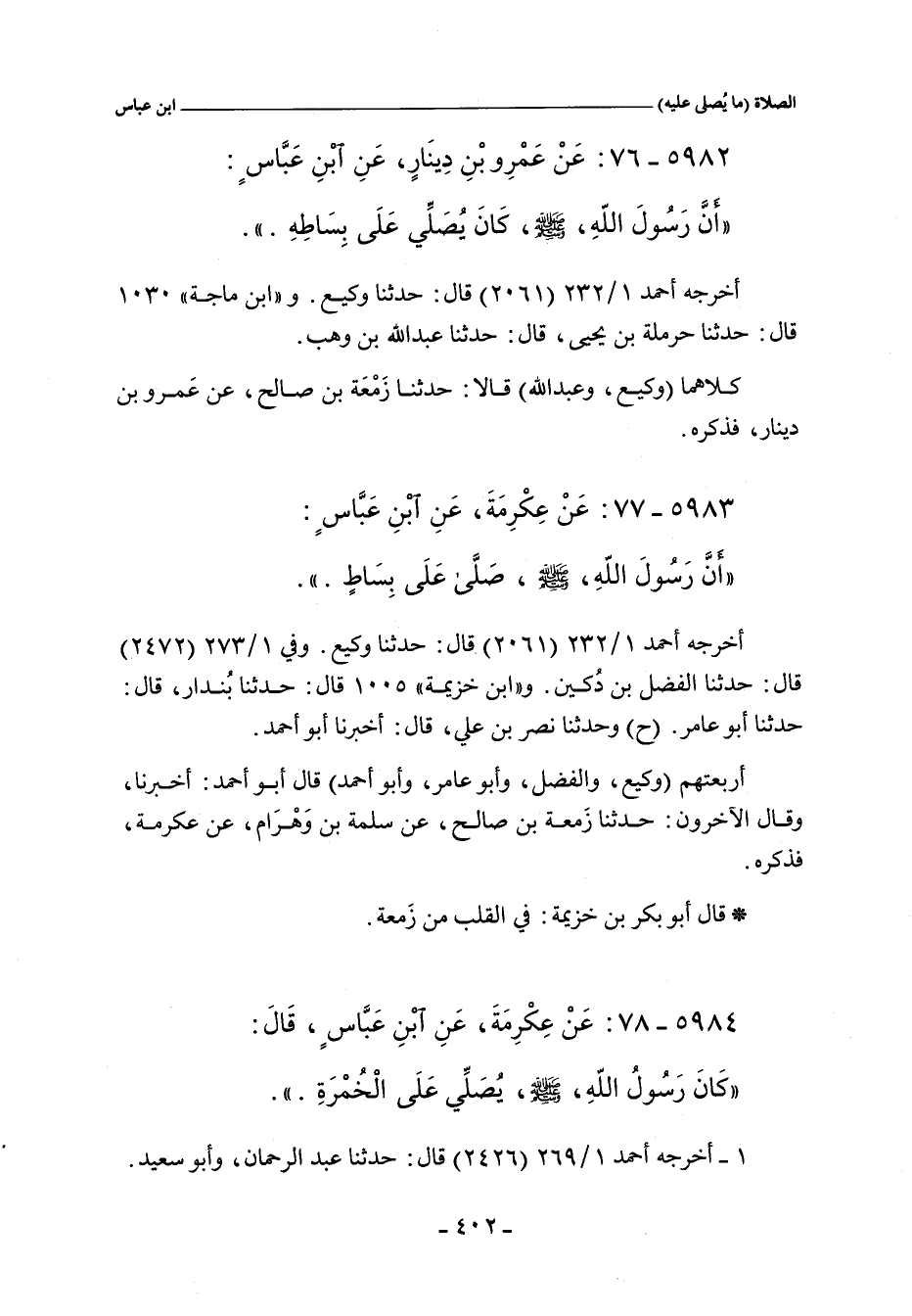 أربعتهم (وكيع , والفضل، وأبو عامر، وأبو أحمد) عن زَمعة بن صالح، عن سلمة بن وَهْرَام، عن عكرمة، عن ابن عباس , فذكره , ليس فيه (عمرو بن دينار.