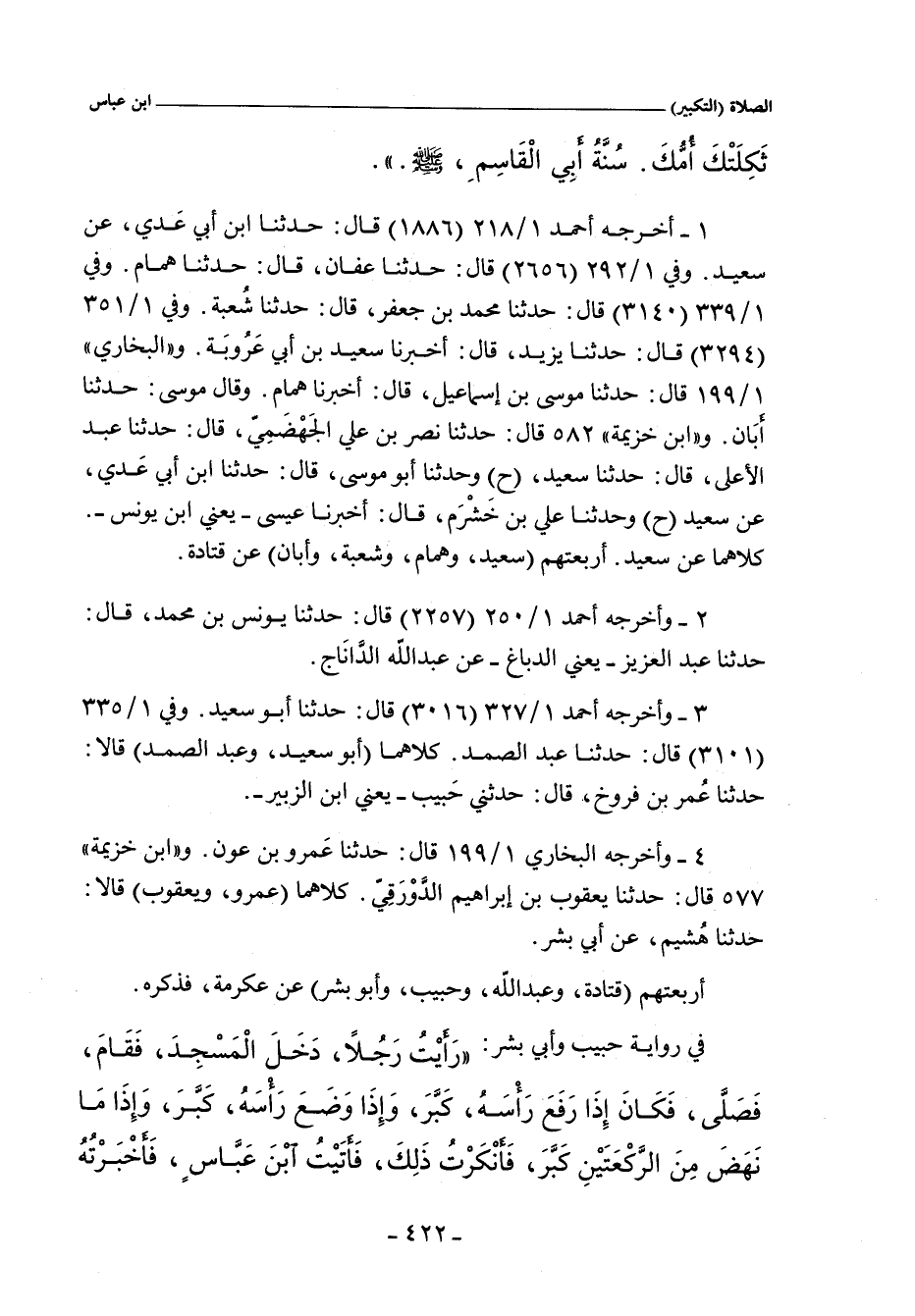أخرجه أحمد ١/ ٢١٨ (١٨٨٦) قال: حدثنا ابن أبي عَدي، عن سعيد، عن قتادة. وفي ١/ ٢٥٠ (٢٢٥٧) قال: حدثنا يونس بن محمد، قال: حدثنا عبد العزيز، يعني الدباغ، عن عبد الله الدَّانَاج. وفي ١/ ٢٩٢ (٢٦٥٦) قال: حدثنا عفان، حدثنا همام، عن قتادة. وفي ١/ ٣٢٧ (٣٠١٦) قال: حدثنا ابوسعيد، حدثنا عمر، يعني ابن فروخ، حدثنا حبيب، يعني ابن الزبير. وفي ١/ ٣٣٥ (٣١٠١) قال: حدثنا عبد الصمد، حدثنا عمر بن فروخ، حدثني حبيب، يعني ابن الزبير. وفي ١/ ٣٣٩ (٣١٤٠) قال: حدثنا محمد بن جعفر، حدثنا سعيد، عن قتادة. وفي ١/ ٣٥١ (٣٢٩٤) قال: حدثنا يزيد، أخبرنا سعيد بن أبي عَرُوبَة، عن قتادة. و"البُخاري" ١/ ١٩٩ قال: حدثنا موسى بن إسماعيل. قال: أخبرنا همام، عن قتادة (ح) وقال موسى: حدثنا أبان، حدثنا قتادة. و"ابن خزيمة" ٥٧٧ قال: حدثنا يعقوب بن إبراهيم الدورقي، حدثنا هشيم، عن أبي بشر. وفي (٥٨٢) قال: حدثنا نصر بن علي الجَهْضَمِي، قال: حدثنا عبد الأعلى، حدثنا سعيد، عن قتادة (ح) وحدثنا أبو موسى، حدثنا ابن أبي عَدي، عن سعيد، عن قتادة (ح) وحدثنا علي بن خشْرَم، أخبرنا عيسى، يعني ابن يونس، عن سعيد، عن قتادة (ح) وحدثنا بندار، حدثنا معاذ بن هشام، حدثني أبي، عن قتادة.
