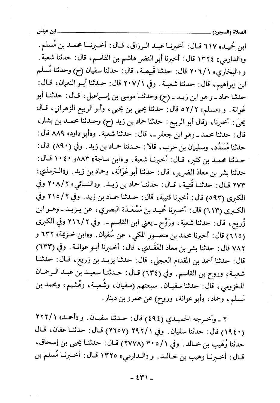 بن حميد) ٦١٧ قال: أخبرنا عبد الرزاق، أخبرنا محمد بن مسلم، عن عمرو بن دينار. و"الدارمي" ١٣١٨ قال: حدثنا أبو النضر هاشم بن القاسم، حدثنا شعبة، عن عمرو بن دينار. وفي (١٣١٩) قال: أخبرنا مسلم بن إبراهيم، ويحيى بن حسان. قالا: حدثنا وهيب. قال: حدثنا ابن طاووس. و"البُخَاريّ" ١/ ٢٠٦ (٨٠٩) قال: حدثنا قَبيصة، قال: حدثنا سفيان عن عمرو بن دينار. وفي (٨١٠) قال: حدثنا مُسلم ابن إبراهيم، قال: حدثنا شعبة، عن عمرو. وفي (٨١٢) قال: حدثنا معلى بن أسد. قال: حدثنا وهيب، عن عبد الله بن طاووس، وفي ١/ ٢٠٧ (٨١٥) قال: حدثنا ابوالنعمان، قال:
