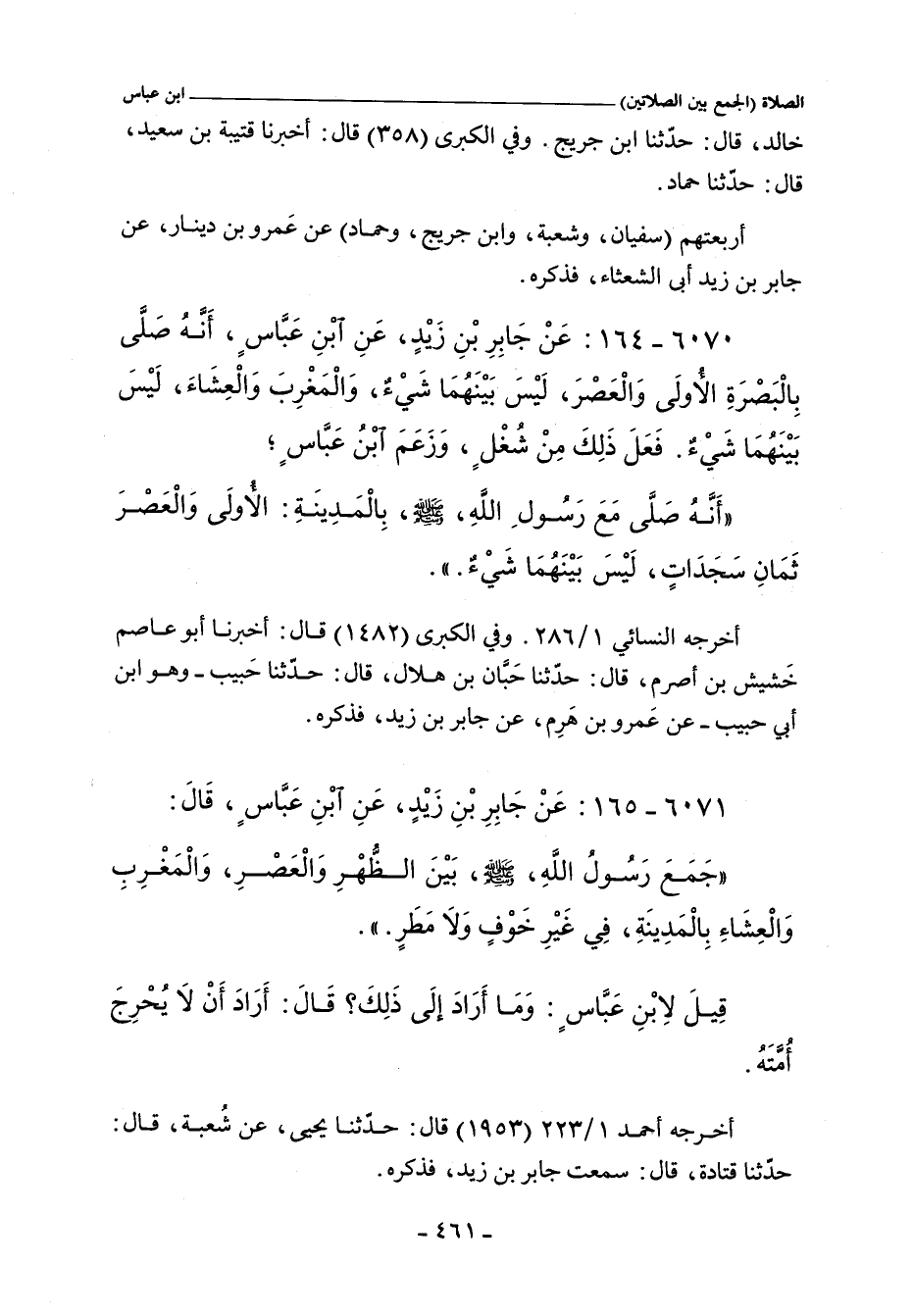 أربعتهم (سفيان، وشعبة، وابن جريج , وحماد) عن عَمرو بن دينار، عن جابر بن زيد ابى الشعثاء، فذكره.