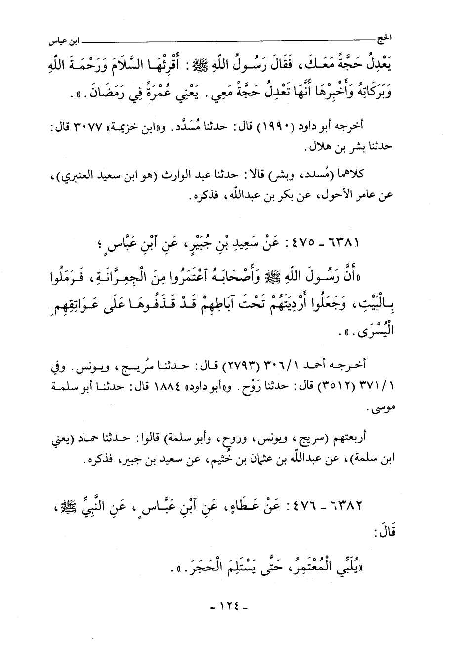 أربعتهم (سريج، ويونس، وروح، وأبو سلمة) عن حماد , عني ابن سلمة، عن عبد الله بن عثمان بن خثيم، عن سعيد بن جبير، فذكره.
