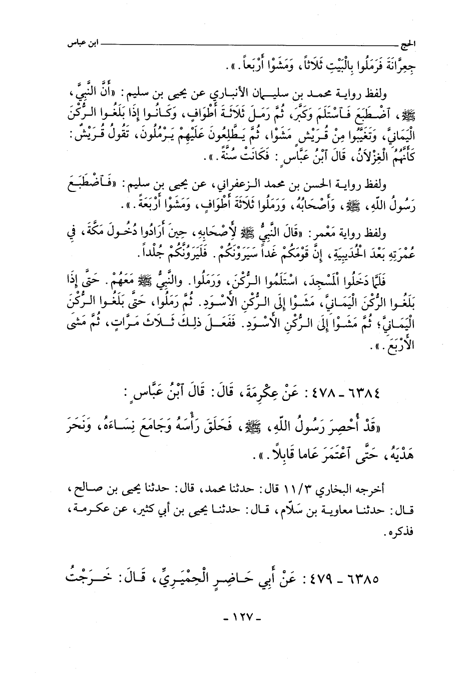 أخرجه البخاري ٣/ ١١ (١٨٠٩) قال: حدثنا محمد، قال: حدثنا يحيى بن صالح، حدثنا معاوية بن سَلاّم، حدثنا يحيى بن أبي كثير، عن عكرمة، فذكره.