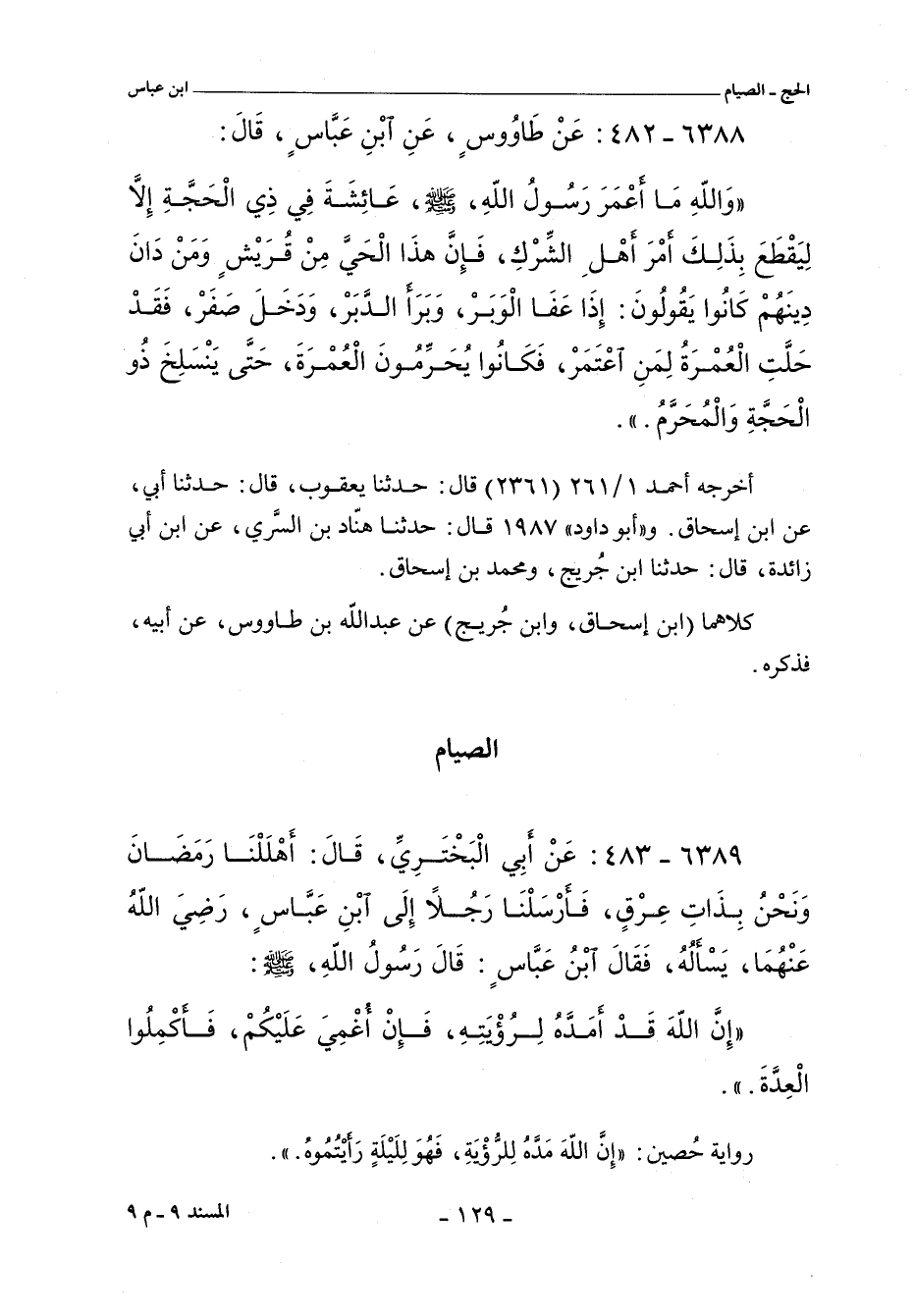 أخرجه أحمد ١/ ٢٦١ (٢٣٦١) قال: حدثنا يعقوب، حدثنا أبي، عن ابن إسحاق. و"أبو داود" ١٩٨٧ قال: حدثنا هنّاد بن السَّري، عن ابن أبي زائدة، حدثنا ابن جُريج، ومحمد بن إسحاق.