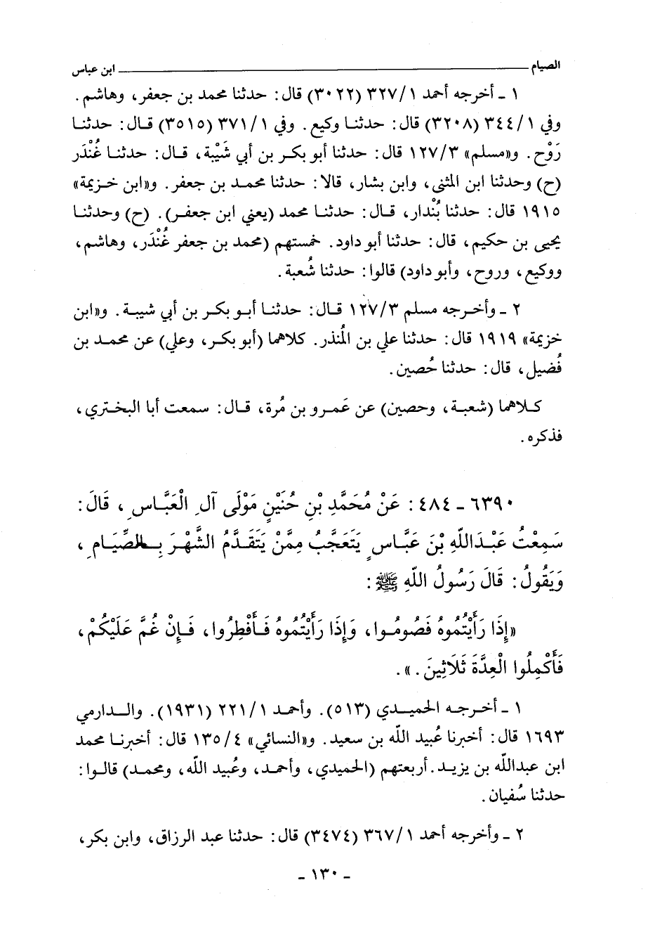 ٦٣٩٠ - عَنْ مُحَمَّدِ بْنِ حُنَيْنٍ مَوْلَى آلِ الْعَبَّاسِ قَالَ سَمِعْتُ عَبْدَ اللَّهِ بْنَ عَبَّاسٍ يَتَعَجَّبُ مِمَّنْ يَتَقَدَّمُ الشَّهْرَ بِالصِّيَامِ وَيَقُولُ قَالَ رَسُولُ اللَّهِ صلى الله عليه وسلم: