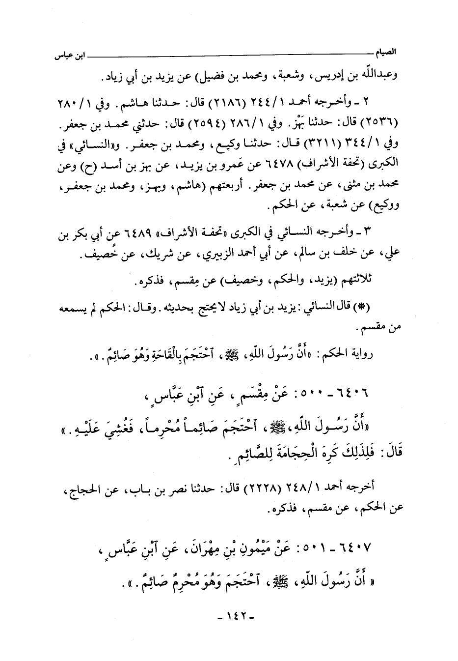 - قال النسائي: يزيد بن أبي زياد لا يحتج بحديثه , وقال: الْحَكَمُ لَمْ يَسْمَعْهُ مِنْ مِقْسَمٍ.