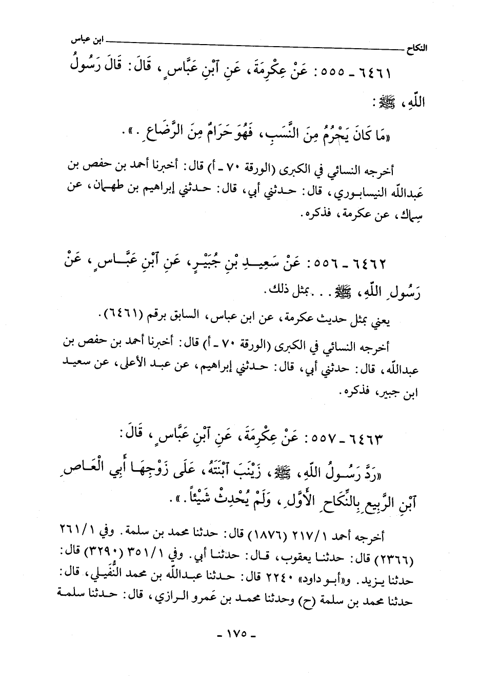 ٦٤٦١ - عن عكرمة عن بن عباس قال قال رسول الله صلى الله عليه وسلم ما كان يحرم من النسب فهو حرام من الرضاع