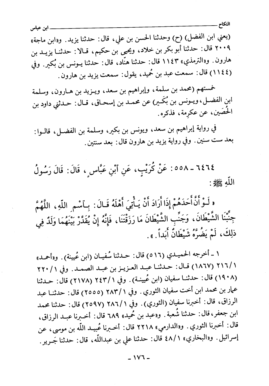 يعني ابن الفضل (ح) وحدثنا الحسن بن علي، حدثنا يزيد، المعنى، كلهم عن ابن إسحاق. و "ابن ماجة" ٢٠٠٩ قال: حدثنا أبو بكر بن خلاد، ويحيى بن حكيم. قالا: حدثنا يزيد بن هارون، أنبأنا محمد بن إسحاق. و"التِّرمِذي" ١١٤٣ قال: حدثنا هنّاد، حدثنا يونس بن بُكير، عن محمد بن إسحاق. وفي (١١٤٤) قال: سمعت عبد بن حُميد، يقول: سمعت يزيد بن هارون يذكر، عن محمد بن إسحاق , عن داود بن الحُصَين، عن عكرِمة، فذكره.