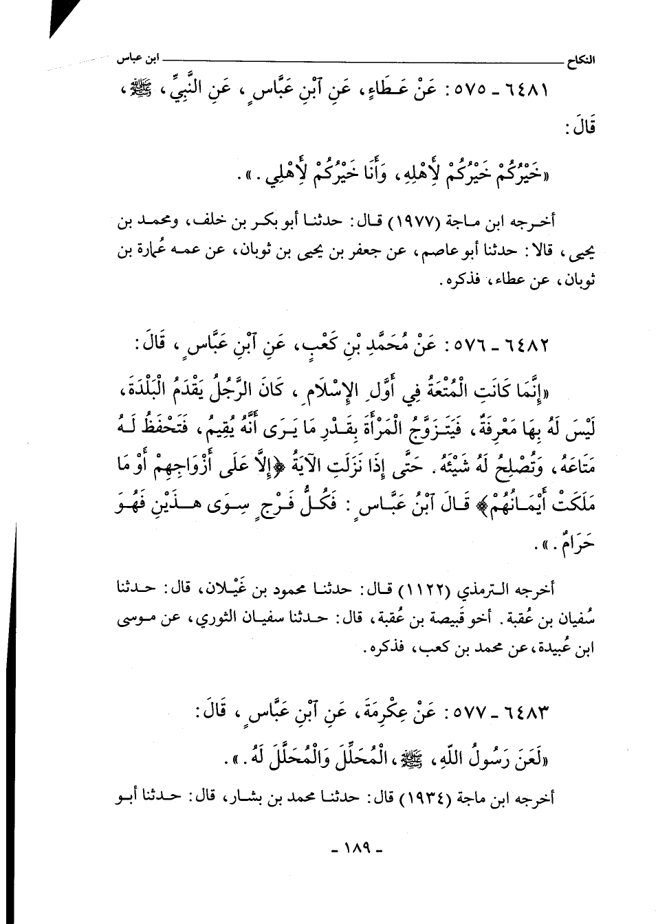 إِنَّمَا كَانَتِ الْمُتْعَةُ فِى أَوَّلِ الإِسْلَامِ كَانَ الرَّجُلُ يَقْدَمُ الْبَلْدَةَ لَيْسَ لَهُ بِهَا مَعْرِفَةٌ فَيَتَزَوَّجُ الْمَرْأَةَ بِقَدْرِ مَا يَرَى أَنَّهُ يُقِيمُ فَتَحْفَظُ لَهُ مَتَاعَهُ وَتُصْلِحُ لَهُ شَيْئَهُ حَتَّى إِذَا نَزَلَتِ الآيَةُ (إِلَاّ عَلَى أَزْوَاجِهِمْ أَوْ مَا مَلَكَتْ أَيْمَانُهُمْ) قَالَ ابْنُ عَبَّاسٍ فَكُلُّ فَرْجٍ سِوَى هَذَيْنِ فَهُوَ حَرَامٌ.