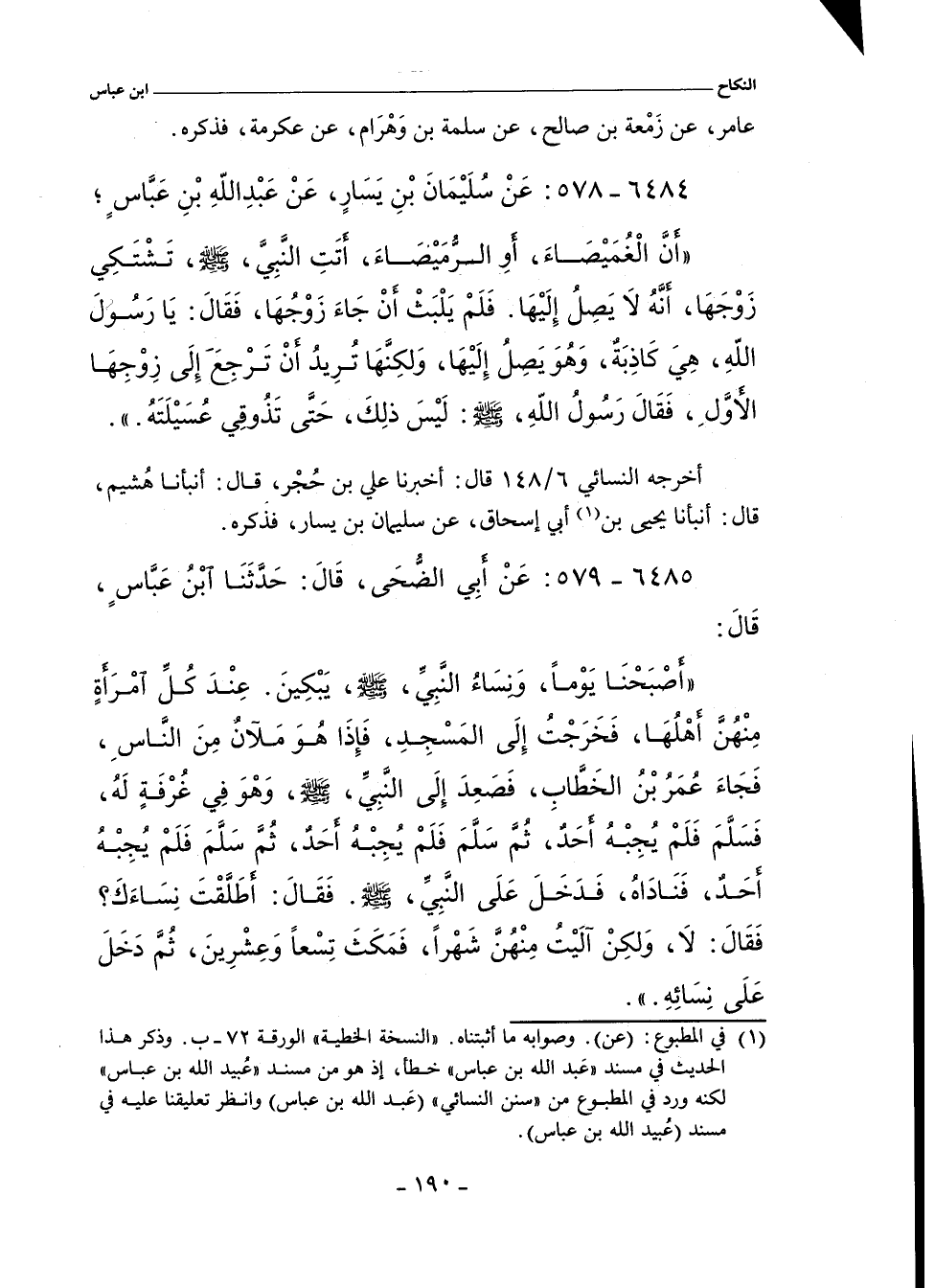 ٦٤٨٤ - عن سُلَيْمَانَ بْنِ يَسَارٍ , عَنْ عُبَيْدِ اللَّهِ بْنِ عَبَّاسٍ؛