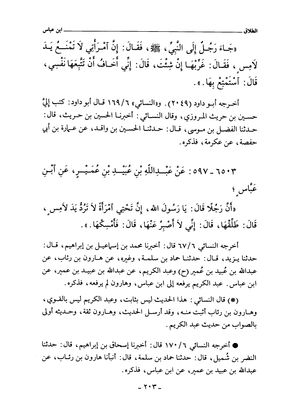 - أخرجه النسائي ٦/ ٦٧ , وفي "الكبرى" ٥٣٢١ قال: أخبرنا محمد بن إسماعيل بن إبراهيم. قال: حدثنا يزيد. قال: حدثنا حماد بن سلمة , وغيره , عن هارون بن رئاب , عن عبد الله بن عبيد بن عمير. قال: