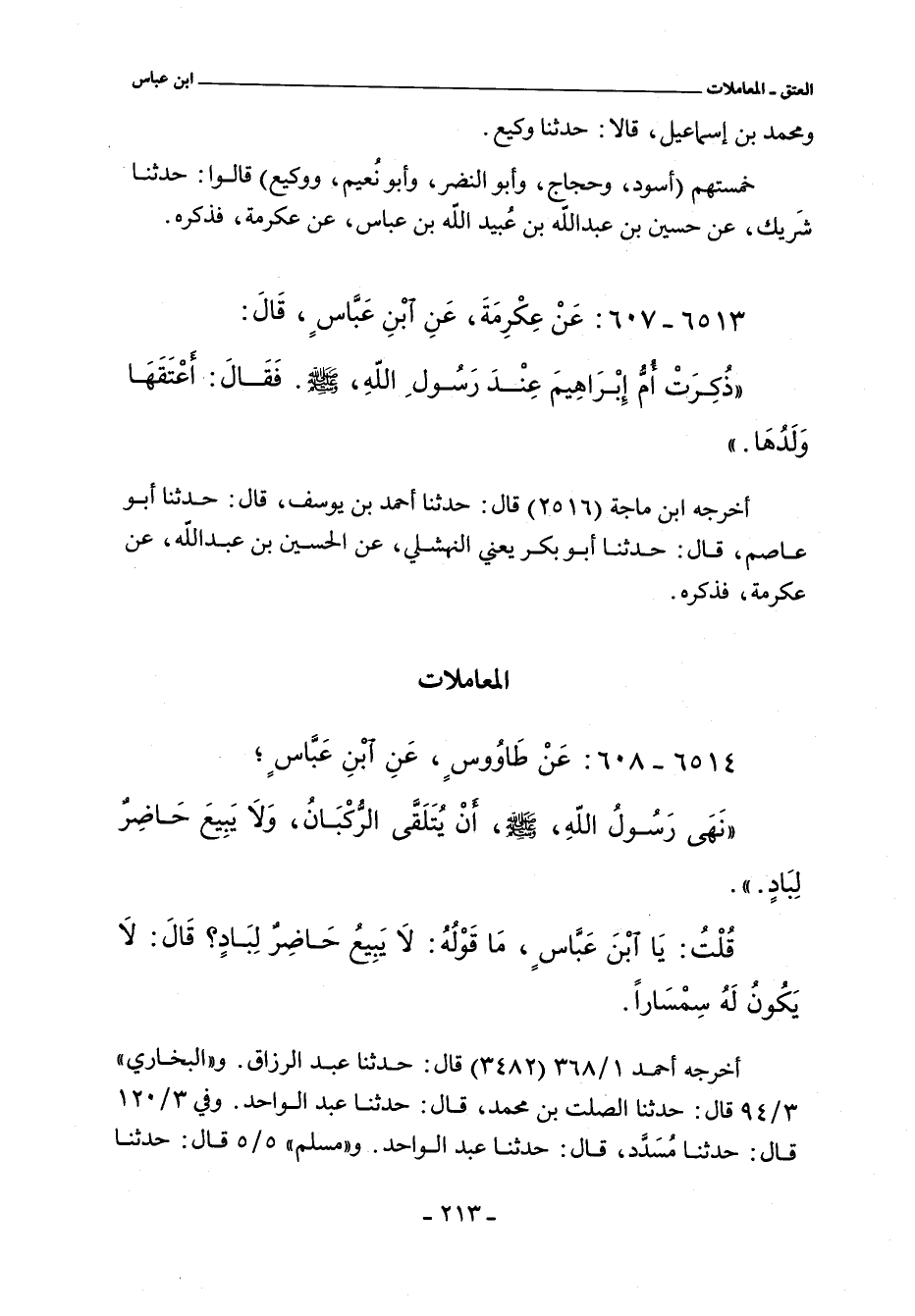 ٦٥١٣ - عَنْ عِكْرِمَةَ عَنِ ابْنِ عَبَّاسٍ قَالَ: