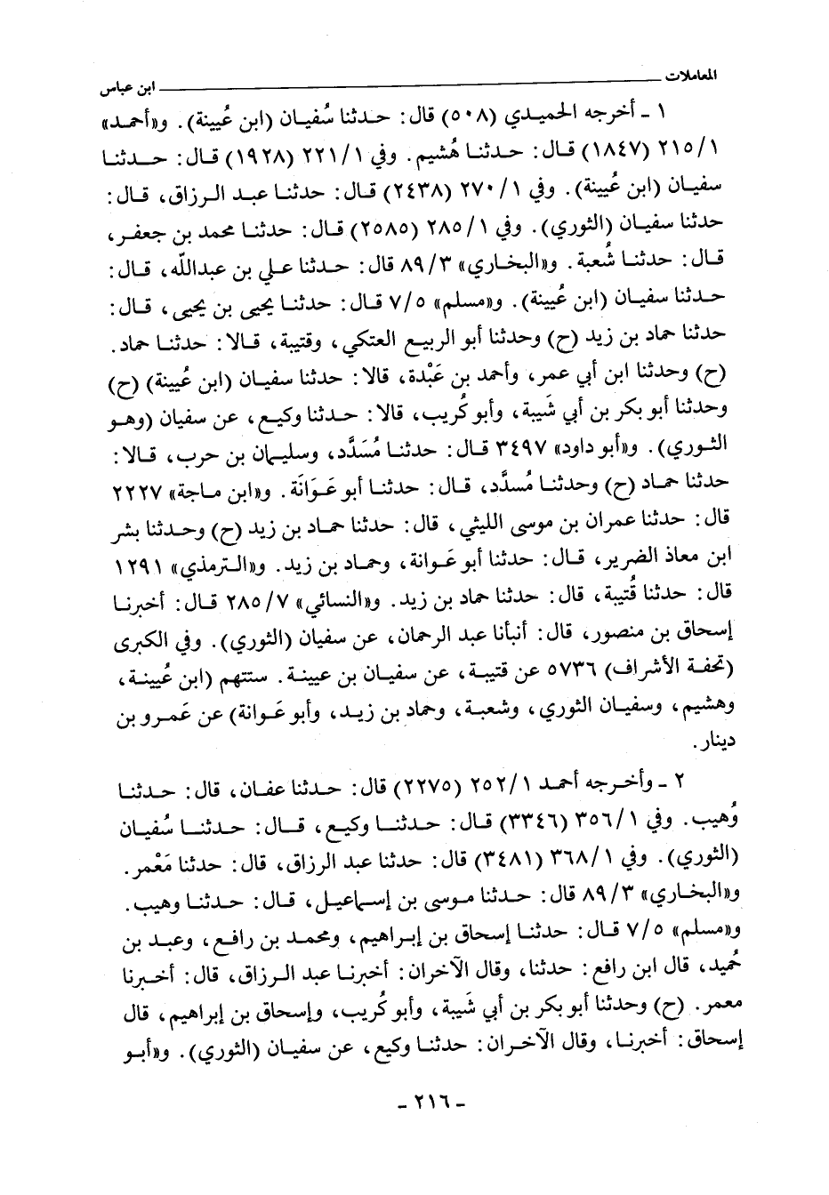 أخرجه الحميدي ٥٠٨ قال: حدثنا سُفيان. قال حدثنا عمرو. و"أحمد" ١/ ٢١٥ (١٨٤٧) قال حدثنا هشيم، أنبأنا عمرو بن دينار. وفي ١/ ٢٢١ (١٩٢٨) قال حدثنا سفيان، عن عمرو. وفي ١/ ٢٥٢ (٢٢٧٥) قال حدثنا عفان حدثنا وهيب، حدثنا عبد الله بن طاووس. وفي ١/ ٢٧٠ (٢٤٣٨) قال حدثنا عبد الرزاق، حدثنا سفيان عن عمرو بن دينار. وفي ١/ ٢٨٥ (٢٥٨٥) قال حدثنا محمد بن جعفر، حدثنا شعبة، عن عمرو بن دينار. وفي ١/ ٣٥٦ (٣٣٤٦) قال حدثنا وكيع، حدثنا سفيان، عن ابن طاووس. وفي ١/ ٣٦٨ (٣٤٨١) قال حدثنا عبد الرزاق، حدثنا معمر، عن ابن طاووس. وفي (٣٨٣٢) قال: حدثنا إسحاق بن إبراهيم، ومحمد بن رافع، وعبد بن حُميد. قال ابن رافع: حدثنا. وقال الآخران: أخبرنا عبد الرزاق، أخبرنا معمر، عن ابن طاووس. وفي (٣٨٣٣) وقال حدثنا أبو بكر بن أبي شَيبة، وأبو كُريب، وإسحاق بن إبراهيم، قال إسحاق: أخبرنا. وقال الآخران: حدثنا وكيع، عن سفيان، عن ابن طاووس. وفي (٣٤٩٧) قال: حدثنا مُسَدَد، وسليمان بن حرب. قالا: حدثنا حماد (ح) وحدثنا مُسدَد، حدثنا أبو عَوَانَة، عن عمرو بن دينار. و"ابن ماجة" ٢٢٢٧ قال: حدثنا عمران بن موسى الليثي، حدثنا حماد بن زيد (ح) وحدثنا بشر ابن معاذ الضرير، حدثنا أبو عَوانة، وحماد بن زيد. قالا: حدثنا عمرو بن دينار والتِّرْمِذِيّ" ١٢٩١ قال: حدثنا قتيبة، حدثنا حماد بن زيد، عن عمرو بن دينار. و"النَّسائي" ٧/ ٢٨٥ وفي "الكبرى" ٦١٤٥ قال: أخبرنا أحمد بن حرب. قال: حدثنا قاسم، عن سفيان، عن ابن طاووس. وفي ٧/ ٢٨٥ وفي الكبرى ٦١٤٦ قال أخبرنا إسحاق بن منصور. قال: أنبأنا عبد الرحمن، عن سفيان، عن عمرو وفي ٧/ ٢٨٥ قال أخبرنا قتيبة. قال: حدثنا سفيان، عن ابن طاووس. وفي ٧/ ٢٨٥ وفي "الكبرى" ٦١٤٩ أخبرنا محمد بن رافع. قال: حدثنا عبد الرزاق، قال: حدثنا معمر، عن ابن طاووس وفي "الكبرى" ٦١٤٧ قال: أخبرنا سعيد بن عبد