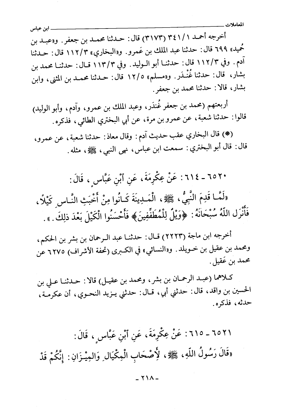 ٦٥٢٠ - عن عِكْرِمَةَ حَدَّثَهُ عَنِ ابن عَبَّاسٍ قَالَ: