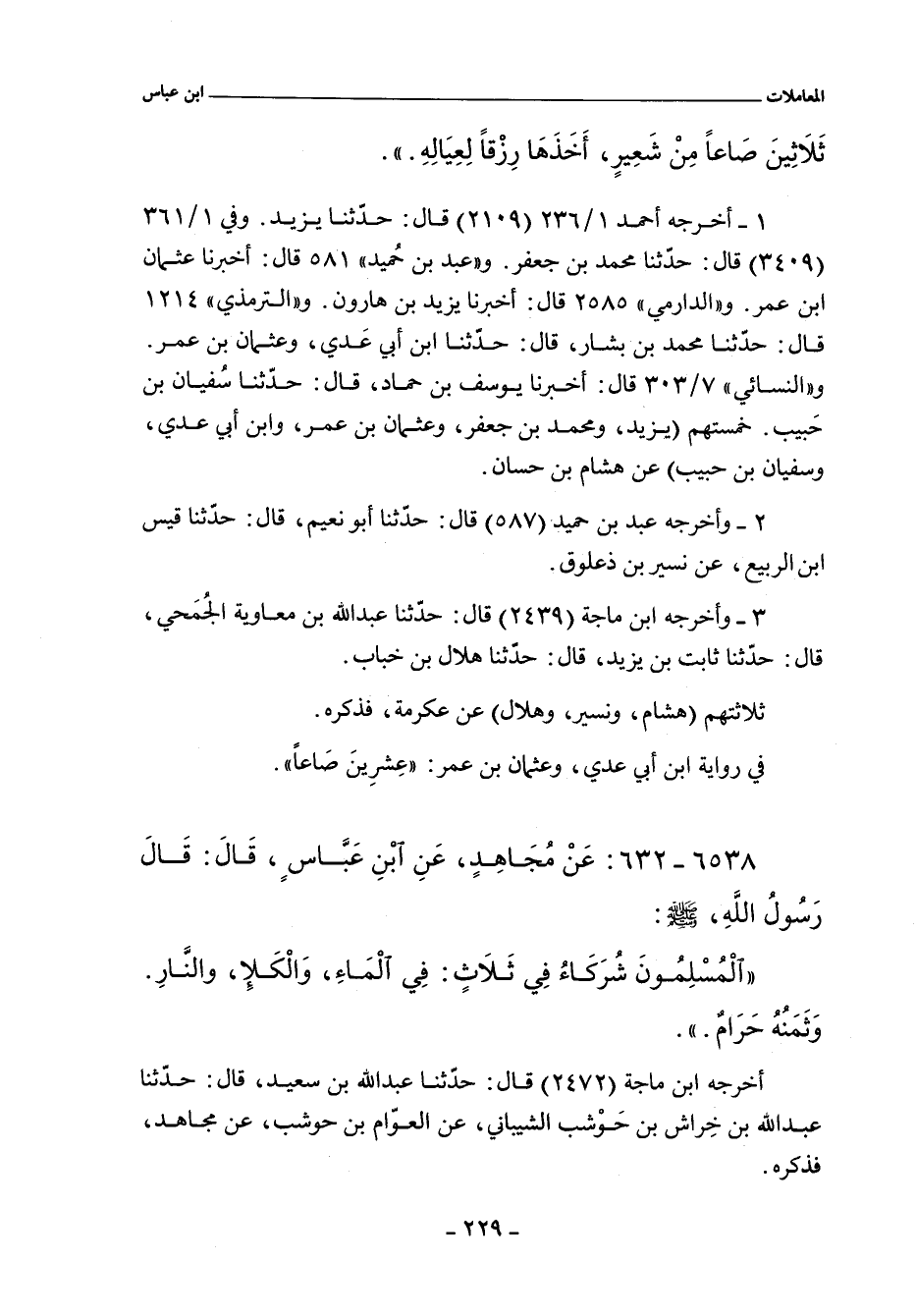 الْمُسْلِمُونَ شُرَكَاءُ فِى ثَلَاثٍ فِى الْمَاءِ وَالْكَلإِ وَالنَّارِ وَثَمَنُهُ حَرَامٌ.