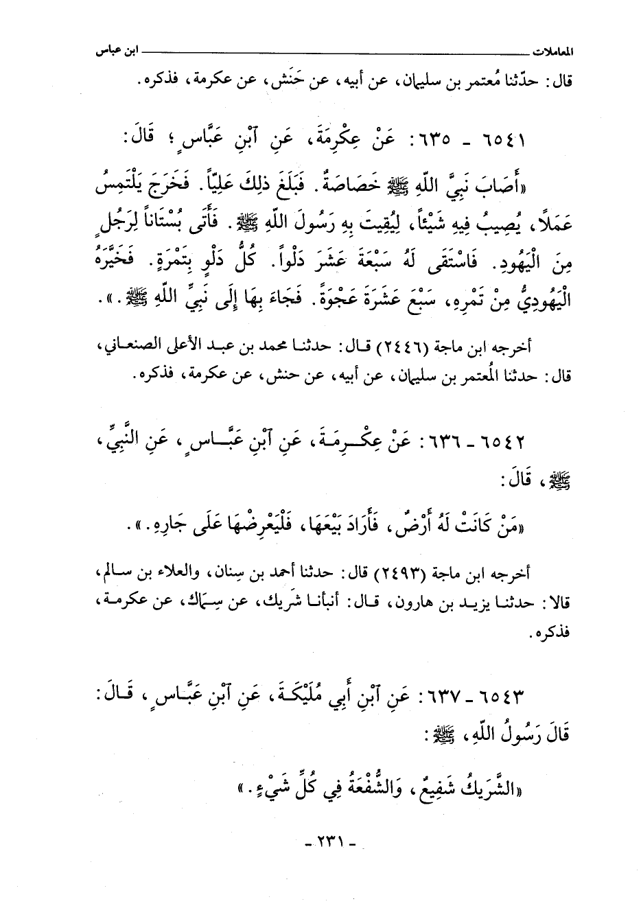 ٦٥٤٣ - عَنِ ابْنِ أَبِى مُلَيْكَةَ عَنِ ابْنِ عَبَّاسٍ قَالَ قَالَ رَسُولُ اللَّهِ صلى الله عليه وسلم: