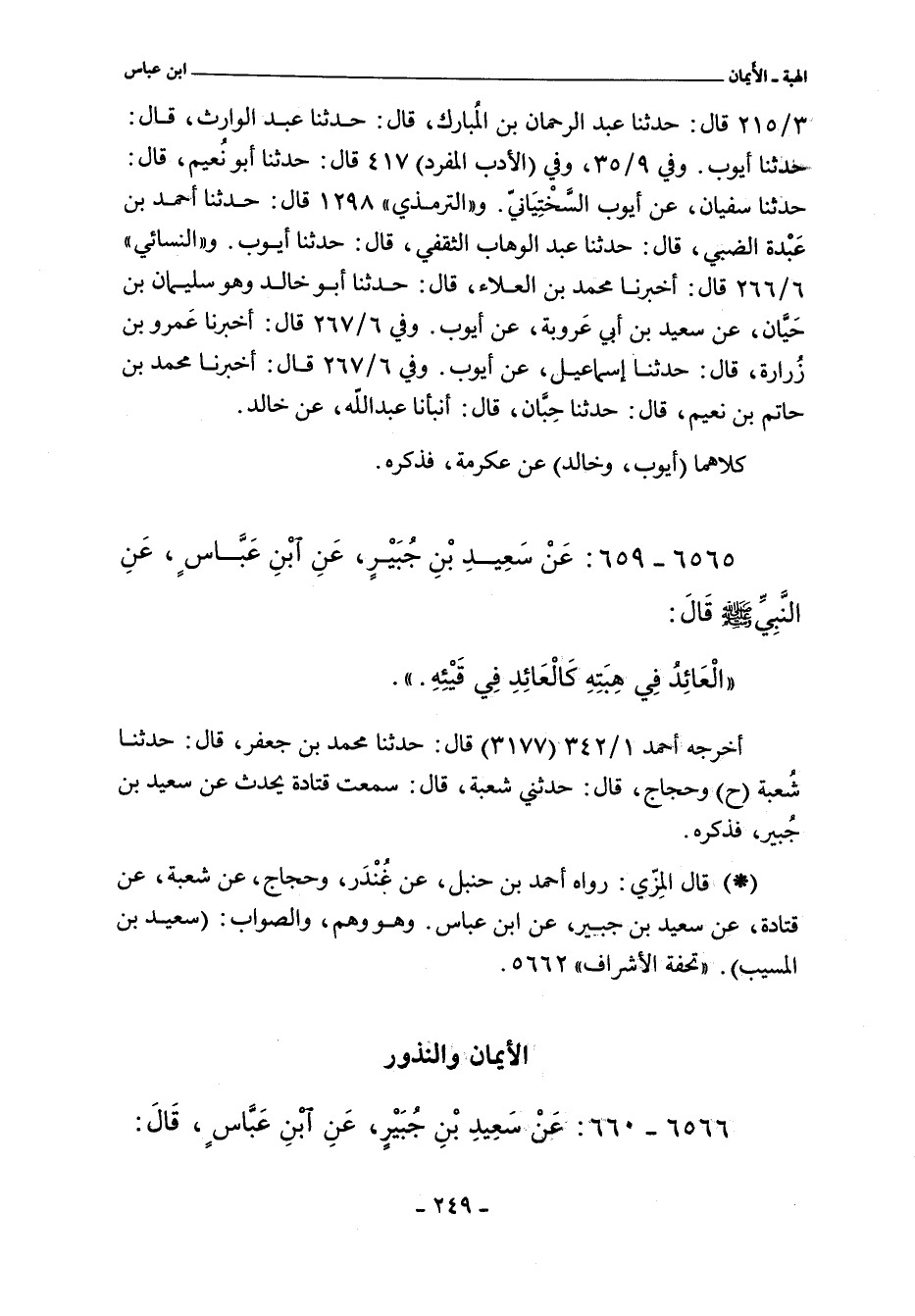 ٦٥٦٥ - عن سعيد بن المسيب عن ابن عباس , رضي الله عنهما. قال: قال النبي صلى الله عليه وسلم: