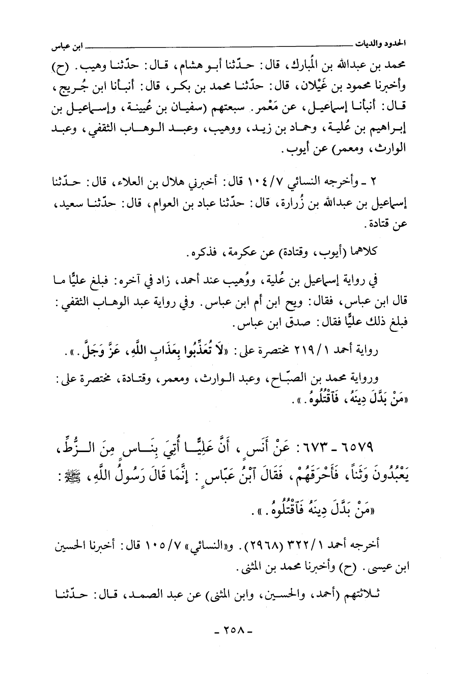 - أخرجه النسائي ٧/ ١٠٤ وفي "الكبرى" ٣٥١١ قال: أخبرني هلال بن العلاء. قال: حدثنا سماعيل بن عبد الله بن زُرارة. قال: حدثنا عباد بن العوام. قال: حدثنا سعيد، عن قتادة. عن عكرمة، عَنِ ابن عَبَّاسٍ، قال: قال رسول الله صلى الله عليه وسلم: