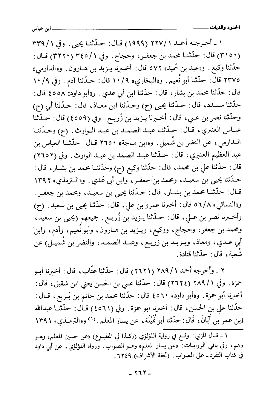 أخرجه أحمد ١/ ٢٧٧ (١٩٩٩) قال: حدثنا يحيى. وفي ١/ ٣٩٩ (٣١٥٠) قال: حدثنا محمد بن جعفر، وحجاج. وفي ١/ ٣٤٥ (٣٢٢٠) قال: حدثنا وكيع. و"عَبد بن حُميد" ٥٧٢ قال: أخبرنا يزيد بن هارون. و"الدارمي" ٢٣٧٠ قال: حدثنا أبونُعيم. و"البُخَارِي" ٩/ ١٠ (٦٨٩٥) قال: حدثنا آدم (ح) وحدثنا محمد بن بشار، حدثنا ابن أبي عدي. و"أبو داود" ٤٥٥٨ قال: حدثنا مسدد، حدثنا يحيى (ح) وحدثنا ابن معاذ، قال: حدثنا أبي (ح) وحدثنا نصر بن علي، أخبرنا يزيد بن زريع. وفي (٤٥٥٩) قال: حدثنا عباس العنبري , قال: حدثنا عبد الصمد بن عبد الوارث (ح) وحدثنا الدارمي , عن النضر بن شميل. و (ابن ماجه) ٢٦٥٢ قال: حدثنا علي بن محمد، حدثنا وكيع (ح) وحدثنا محمد بن بشار، حدثنا يحيى بن سعيد، ومحمد بن جعفر، وابن أبي عدي. والتِّرْمِذِيّ" ١٣٩٢ قال: حدثنا محمد بن بشار، حدثنا يحيى بن سعيد، ومحمد بن جعفر. و"النَّسائي" ٨/ ٥٦، وفي "الكبرى" ٧٠٢٣ قال: أخبرنا عمرو بن علي، قال: حدثنا يحيى بن سعيد. وفي ٨/ ٥٦، وفي "الكبرى" ٧٠٢٤ قال: أخبرنا نصر بن علي. قال: حدثنا يزيد بن زريع.