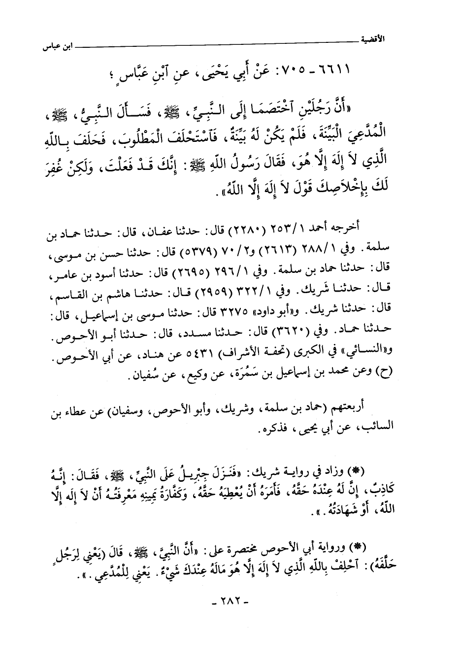 أخرجه أحمد ١/ ٢٥٣ (٢٢٨٠) قال: حدثنا عفان، حدثنا حماد بن سلمة. وفي ١/ ٢٨٨ (٢٦١٣) و ٢/ ٧٠ (٥٣٧٩) قال: حدثنا حسن بن موسى، حدثنا حماد بن سلمة. وفي ١/ ٢٩٦ (٢٦٩٥) قال: حدثنا أسود بن عامر، حدثنا شَريك. وفي ١/ ٣٢٢ (٢٩٥٨) قال: حدثنا هاشم بن القاسم، قال: حدثنا شريك. و"أبو داود" ٣٢٧٥ قال: حدثنا موسى بن إسماعيل، حدثنا حماد. وفي (٣٦٢٠) قال: حدثنا مسدد، قال: حدثنا أبو الأحوص. و"النَّسائي" في "الكبرى" ٥٩٦٤ قال: أخبرنا محمد بن إسماعيل بن سَمُرَة كوفي، عن وكيع، عن سفيان. وفي (٥٩٦٥) قال: أخبرنا هناد بن السري، عن أبي الأحوص.