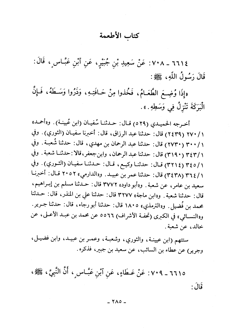 أخرجه الحميدي (٥٢٩) قال: حدثنا سُفيان. و"أحمد" ١/ ٢٧٠ (٢٤٣٩) قال: حدثنا عبد الرزاق، أخبرنا سفيان. وفي ١/ ٣٠٠ (٢٧٣٠) قال: حدثنا عبد الرحمن بن مهدي، قال: حدثنا شعبة. وفي ١/ ٣٤٣ (٣١٩٠) قال: حدثنا عبد الرحمن، وابن جعفر، قالا: حدثنا شعبة. وفي ١/ ٣٤٥ (٣٢١٤) قال: حدثنا وكيع، حدثنا سفيان. وفي ١/ ٣٦٤ (٣٤٣٨) قال: حدثنا عمر بن عبيد. و"الدارِمِي" ٢٠٤٦ قال: أخبرنا سعيد بن عامر، عن شعبة. و"أبو داود" ٣٧٧٢ قال: حدثنا مسلم بن إبراهيم، حدثنا شعبة. و (اابن ماجة) ٣٢٧٧ قال: حدثنا علي بن المنذر، حدثنا محمد بن فُضيل. والتِّرْمِذِيّ" ١٨٠٥ قال: حدثنا أبو رجاء، حدثنا جرير. و"النَّسائي" في "الكبرى" ٦٧٢٩ قال: أخبرنا محمد بن عبد الأعلى، قال: حدثنا خالد. قال: حدثنا شعبة.