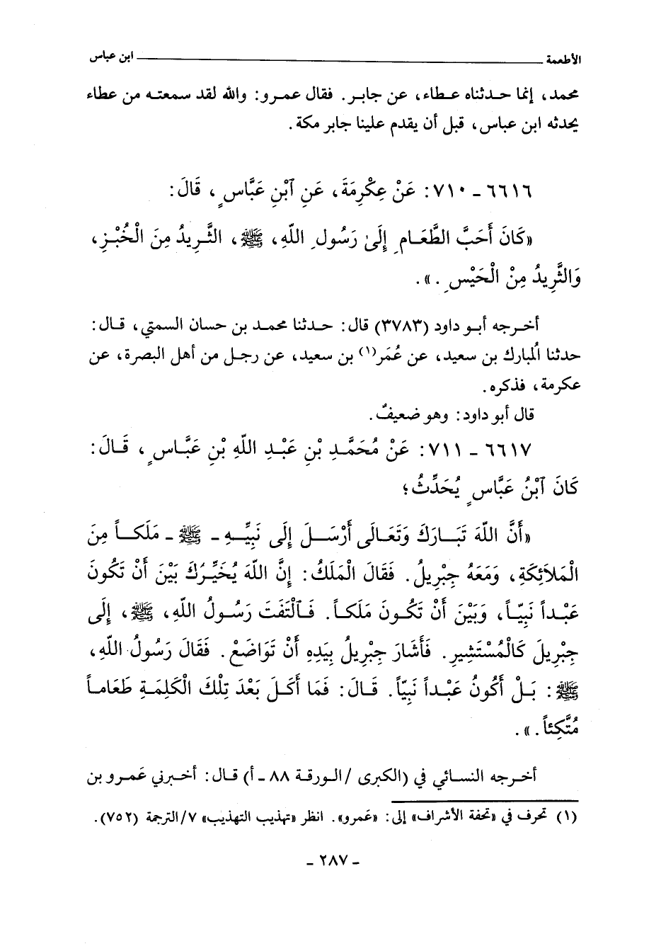 كَانَ أحَبَّ الطَّعَامِ إِلَى رَسُولِ الله، صلى الله عليه وسلم، الثَّرِيدُ مِنَ الْخُبْزِ، وَالثَّرِيدً مِنْ الْحَيْسِ.