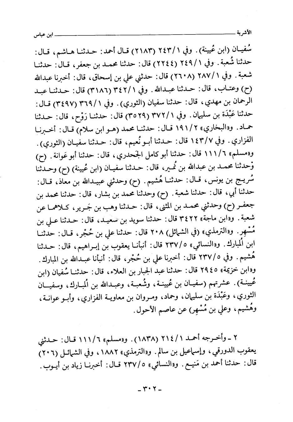 سُفيان. وفي ١/ ٢٤٣ (٢١٨٣) قال: حدثنا هاشم، حدثنا شعبة. وفي ١/ ٢٤٩ (٢٢٤٤) قال: حدثنا محمد بن جعفر، حدثنا شعبة. وفي ١/ ٢٨٧ (٢٦٠٨) قال: حدثني علي بن إسحاق، أخبرنا عبد الله (ح) وعتاب، قال: حدثنا عبد الله. وفي ١/ ٣٤٢ (٣١٨٦) قال: حدثنا عبد الرحمن بن مهدي، حدثنا سفيان. وفي ١/ ٣٦٩ (٣٤٩٧) قال: حدثنا عَبْدَة بن سليمان. وفي ١/ ٣٧٢ (٣٥٢٩) قال: حدثنا رَوْح، حدثنا حماد. و"البُخَارِي" ٢/ ١٩١ (١٦٣٧) قال: حدثنا محمد، هو ابن سلام أخبرنا الفزاري. وفي ٧/ ١٤٣ (٥٦١٧) قال: حدثنا أبو نُعيم، حدثنا سفيان. و"مسلم" ٦/ ١١١ (٥٣٢٨) قال: حدثنا أبو كامل الجَحدري، حدثنا أبو عَوانة، وفي (٥٣٢٩) قال: وحدثنا محمد بن عبد الله بن نُمير، حدثنا سفيان، وفي (٥٣٣٠) قال: وحدثنا سُريج بن يونس، حدثنا هُشيم، وفي (٥٣٣١) قال: وحدثني عبيد الله بن معاذ، حدثنا أبي، حدثنا شعبة وفي (٥٣٣٢) قال: وحدثناه محمد بن بشار، حدثنا محمد بن جعفر (ح) وحدثني محمد بن المثنى، حدثنا وهب بن جَرير، كلاهما عن شعبة. و (اابن ماجة) ٣٤٢٢ قال: حدثنا سويد بن سعيد، حدثنا علي بن مُسْهِر. والتِّرْمِذِيّ" في (الشمائل) ٢٠٨ قال: حدثنا علي بن حُجْر، حدثنا ابن الُمبارك. و"النَّسائي" ٥/ ٢٣٧ وفي "الكبرى" ٣٩٤٢ قال: أنبأنا يعقوب بن إبراهيم، قال: حدثنا هشيُم. وفي ٥/ ٢٣٧ وفي "الكبرى" ٣٩٤٣ قال: أخبرنا علي بن حُجْر، قال: أنبأنا عبد الله بن المبارك. و"ابن خزيمة" ٢٩٤٥ قال: حدثنا عبد الجبار بن العلاء، حدثنا سُفيان.