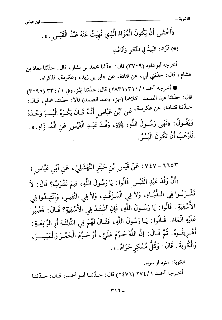 نَهَى رَسُولُ الله، صلى الله عليه وسلم، وَفْدَ عَبْدِ الْقَيْسِ عَنِ الْمُزَاءِ.