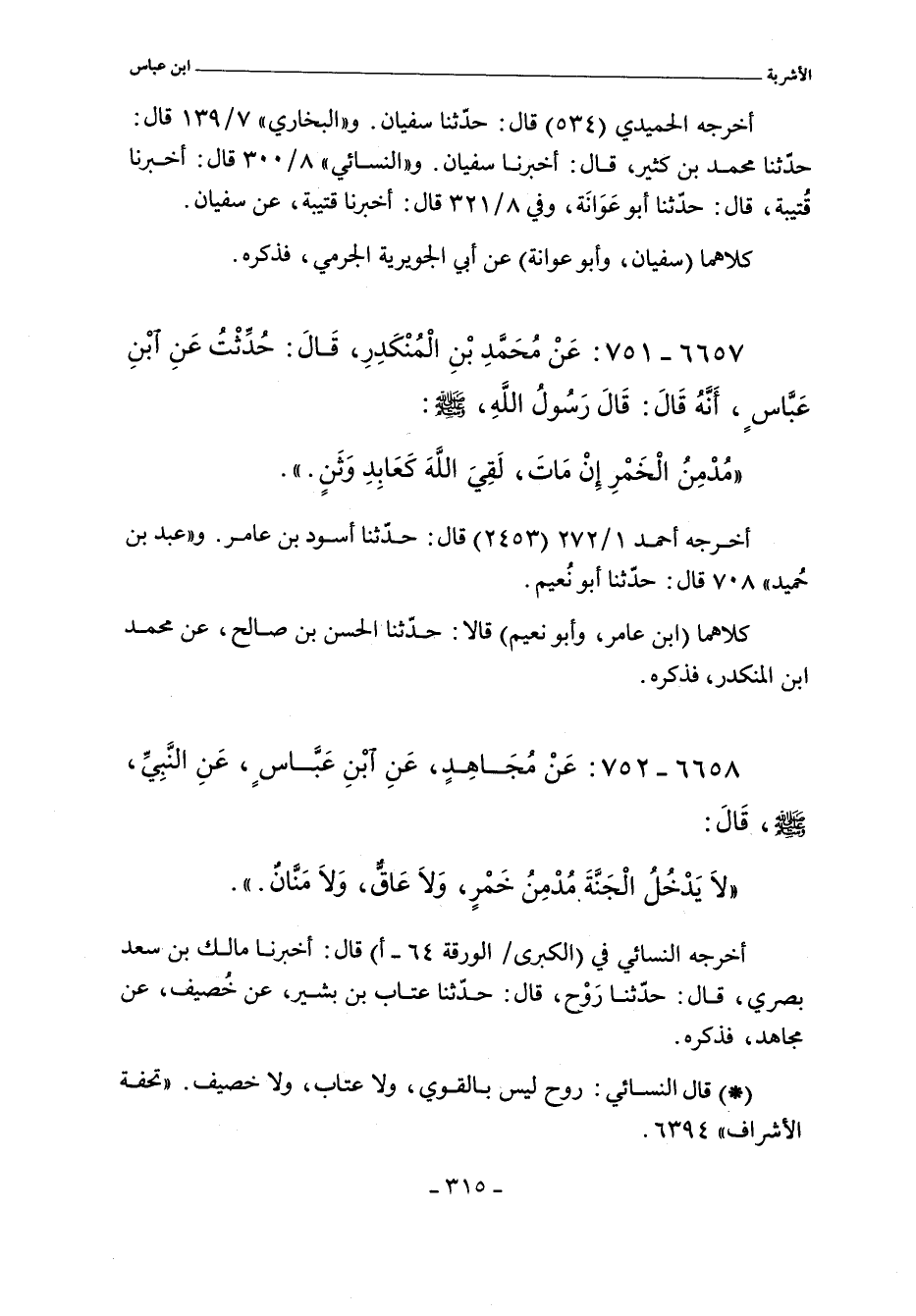 - أخرجه النسائي، في "الكبرى" ٤٩٠٢ قال: أخبرنا أحمد بن سليمان. قال: حدثنا عبيد الله، عن إسرائيل، عن عبد الكريم، عن مجاهد، قال: لايدخل الجنة عاق، ولا منان، ولامدمن خمر، ولا من رجع في أعرابيته بعد الهجرة (موقوف.