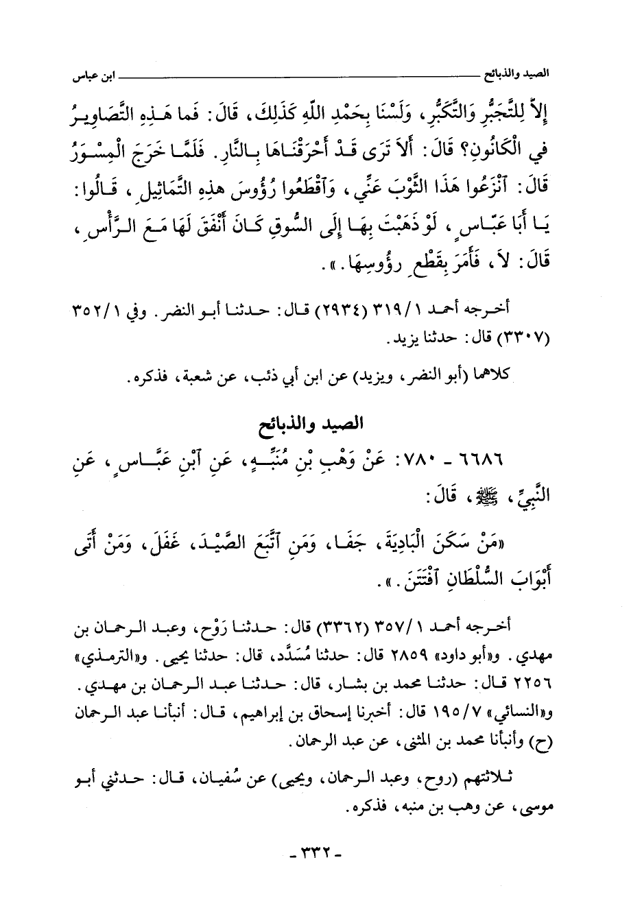 أخرجه أحمد ١/ ٣٥٧ (٣٣٦٢) قال: حدثنا عبد الرحمن بن مهدي. و"أبو داود" ٢٨٥٩ قال: حدثنا مُسَدَّد، حدثنا يحيى. والتِّرْمِذِيّ" ٢٢٥٦ قال: حدثنا محمد بن بشار، حدثنا عبد الرحمن بن مهدي. و"النَّسائي" ٧/ ١٩٥، وفي "الكبرى" ٤٨٠٢ قال: أخبرنا إسحاق بن إبراهيم. قال: أنبأنا عبد الرحمن (ح) وأنبأنا محمد بن المثنى، عن عبد الرحمن.