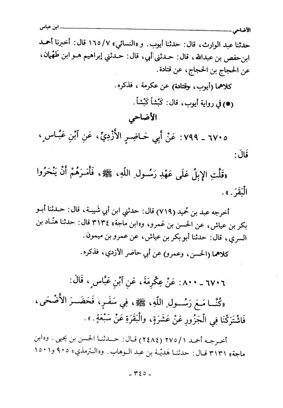 حدثنا عبد الوارث، حدثنا أيوب. و"النَّسَائي" ٧/ ١٦٥، وفي "الكبرى" ٤٥٣١ قال: أخبرنا أحمد بن حفص بن عبد الله. قال: حدثنى أبي. قال: حدثني إبراهيم، هو ابن طَهْمان، عن الحجاج بن الحجاج، عن قتادة.