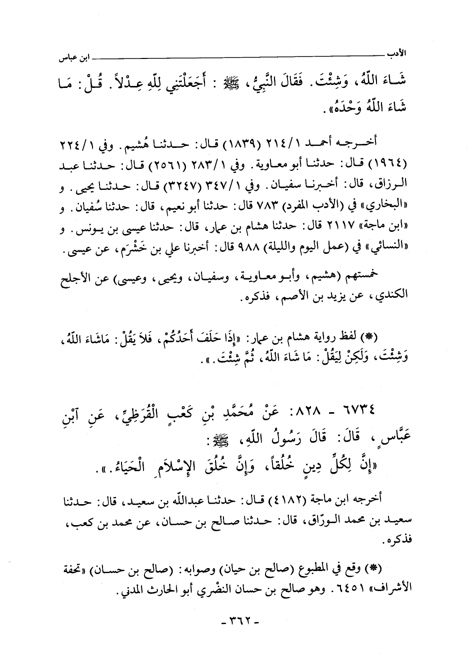 - لفظ هشام بن عمار: إذا حلف أحدكم , فلا يقل: ما شاء الله , وشئت , ولكن ليقل: ما شاء الله , ثم شئت.