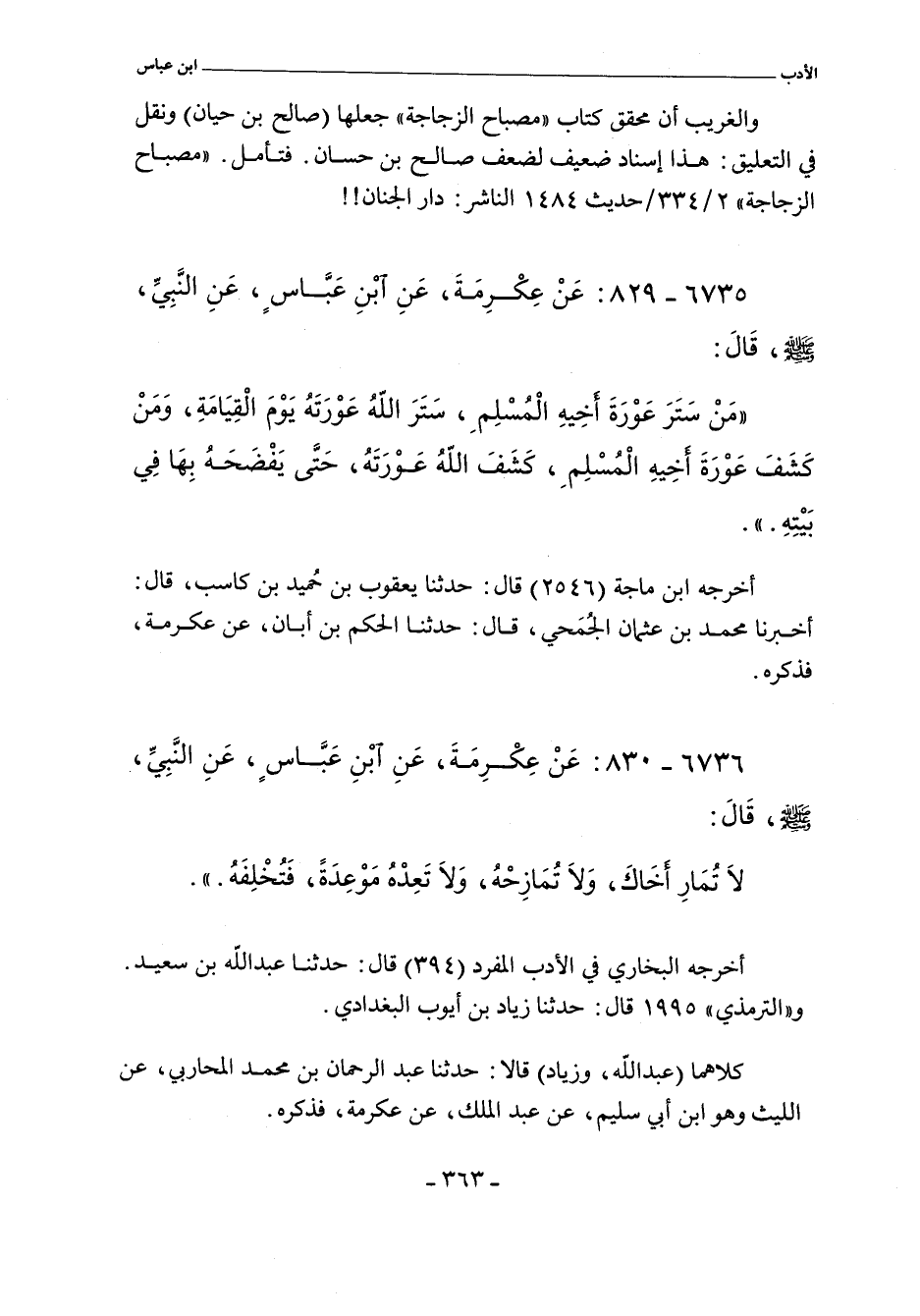 ٦٧٣٦ - عَنْ عِكْرِمَة، عَنِ ابن عَبَّاسٍ، عَنِ النَّبِيِّ، صلى الله عليه وسلم، قَالَ: