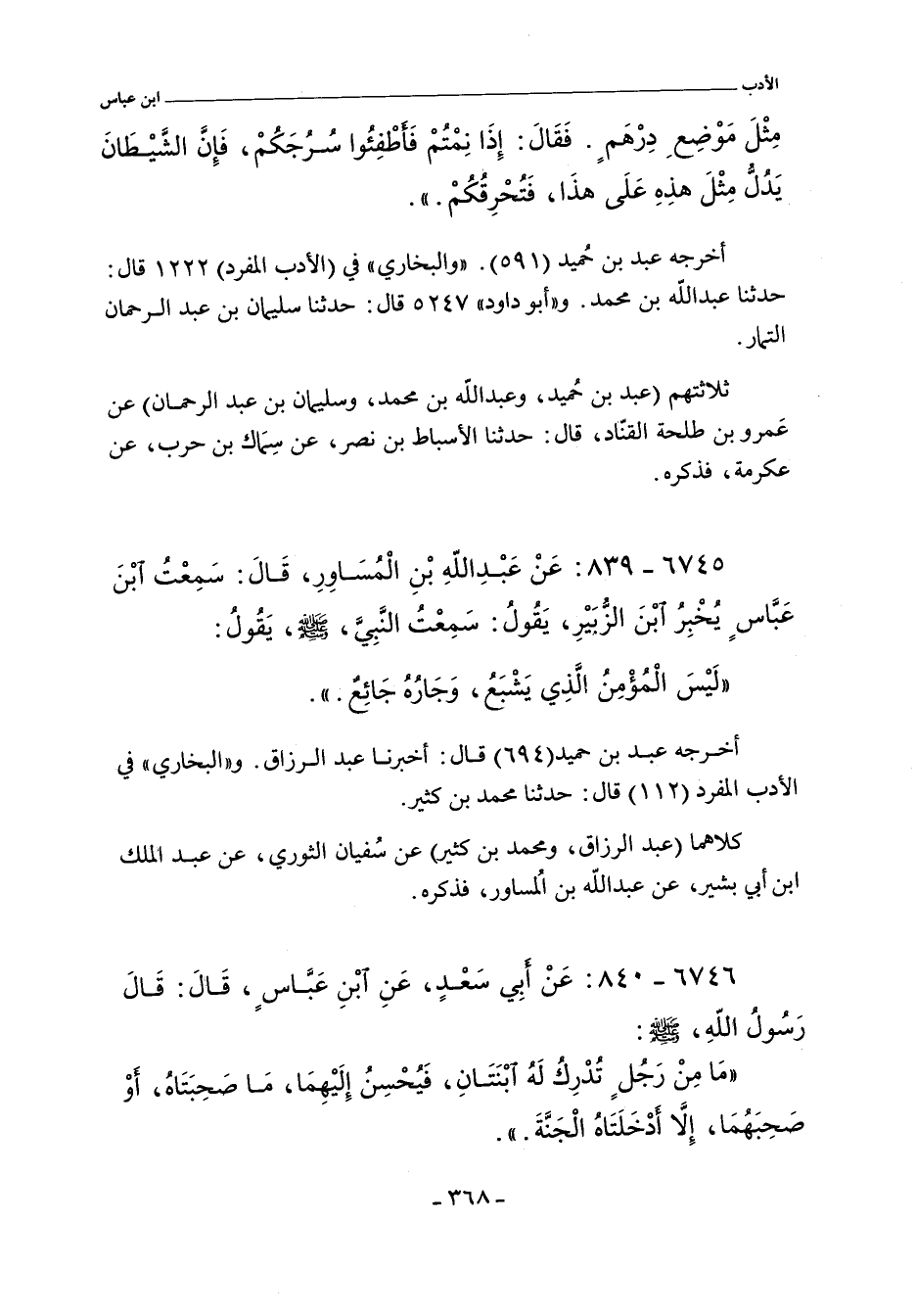 ٦٧٤٥ - عن عبد الله بن مساور سمعت بن عباس ذكر بن الزبير فبخله ثم قال سمعت رسول الله صلى الله عليه وسلم يقول: