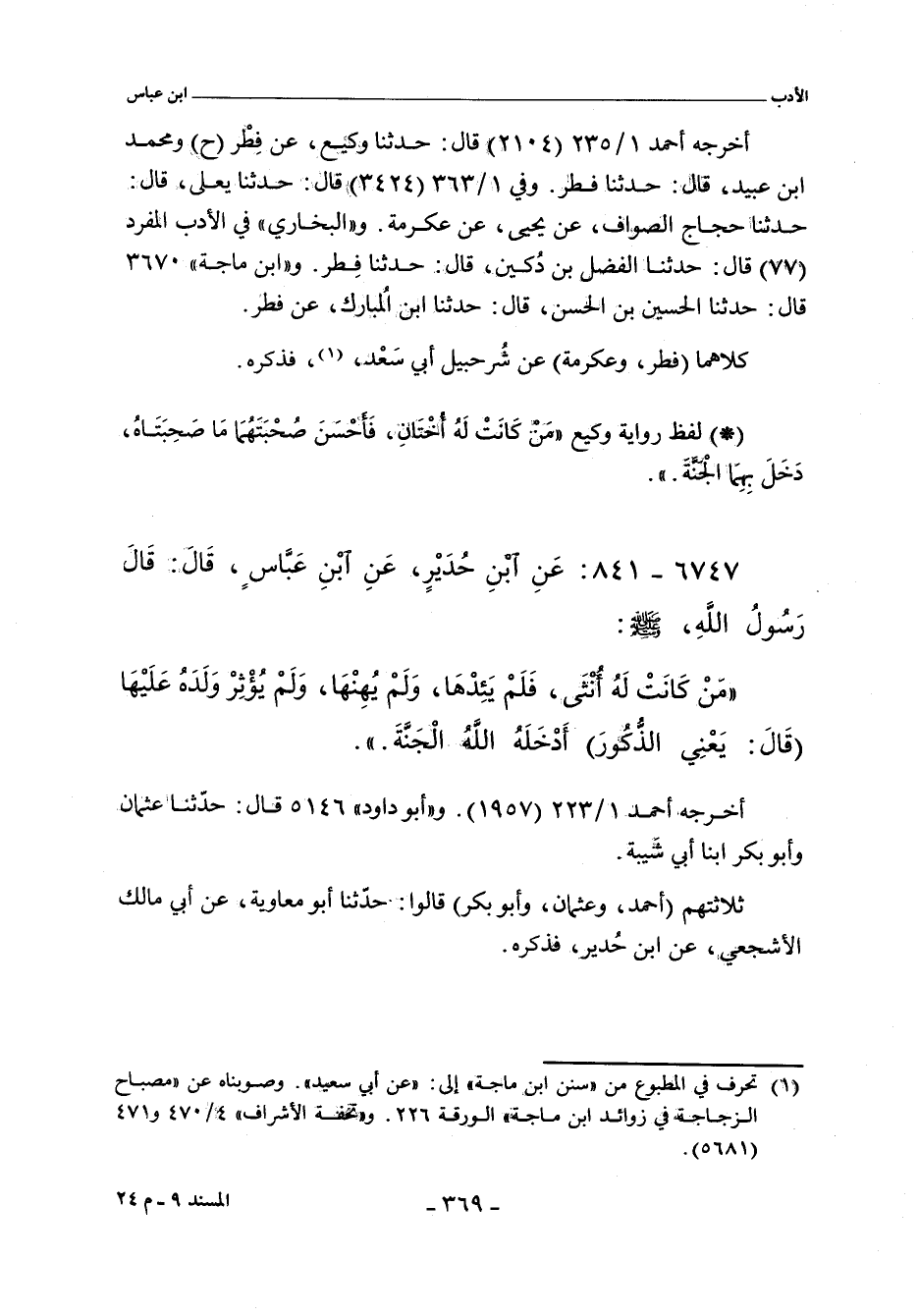 أخرجه أحمد ١/ ٢٢٢ (١٩٥٧)، وأبو داود (٥١٤٦) قال: حدثنا عثمان، وأبو بكر ابنا أبي شَيبة، المعنى.