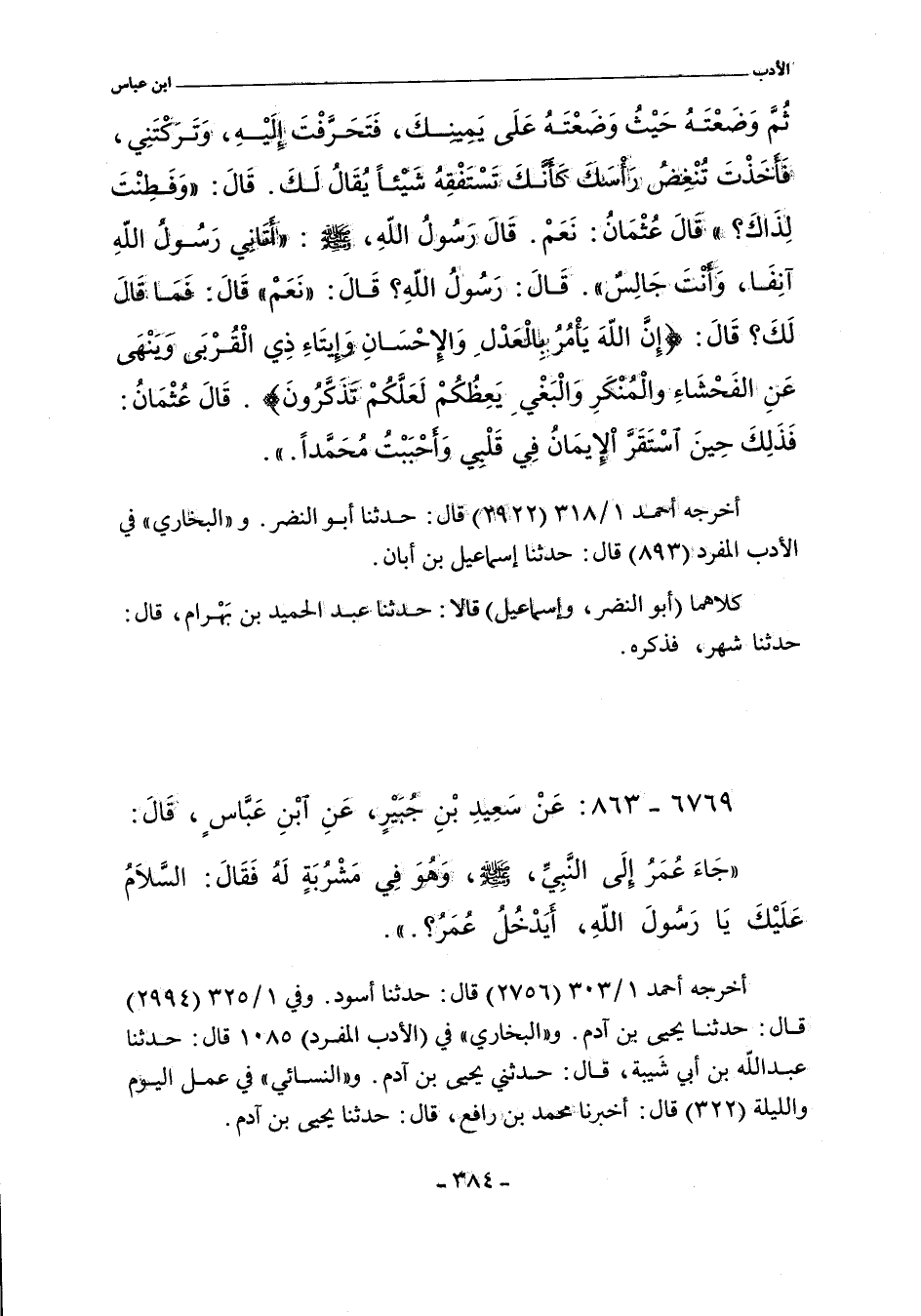 أخرجه أحمد ١/ ٣١٨ (٢٩٢٢) قال: حدثنا أبو النضر. و"البُخَارِي" في (الأدب المفرد) ٨٩٣ قال: حدثنا إسماعيل بن أبان.