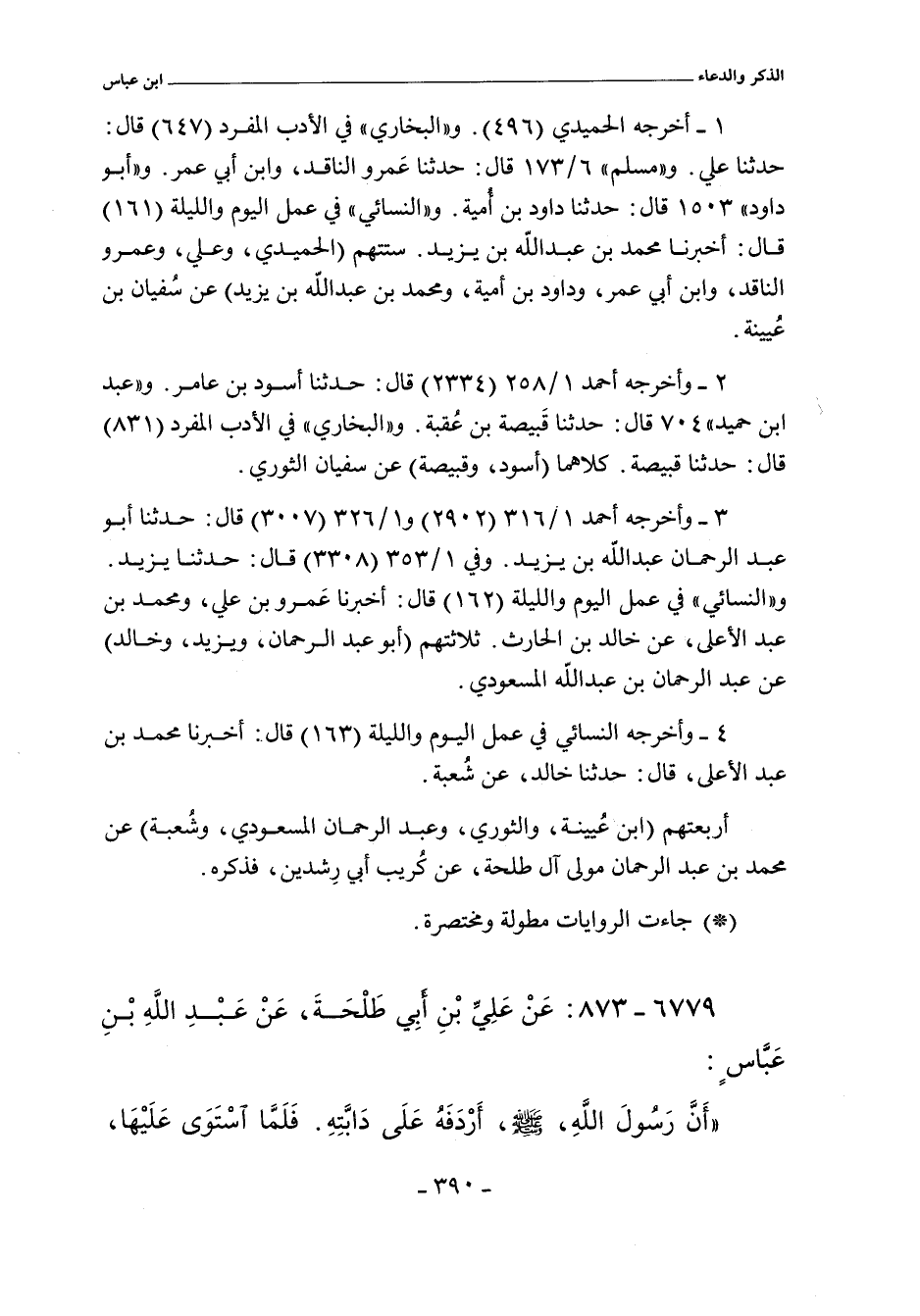 ١ - أخرجه الحميدي (٤٩٦. و"البُخَاريّ" في الأدب المفرد (٦٤٧) قال: حدثنا علي. و"مسلم" ٦/ ١٧٣ قال: حدثنا عمرو الناقد , وابن أبي عمر. و"أبو داود" ١٥٠٣ قال: حدثنا داود بن أمية. و"النَّسَائي" في عمل اليوم والليلة (١٦١) قال: أخبرنا محمد بن عبد الله بن يزيد. ستتهم (الحميدي , وعلي , وعمرو الناقد , وابن أبي عمر , وداود بن أمية , ومحمد بن عبد الله بن يزيد) عن سفيان بن عيينة.
