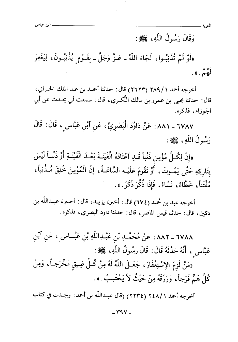 ٦٧٨٨ - عن عَلِىِّ بْنِ عَبْدِ اللَّهِ بْنِ عَبَّاسٍ عَنِ ابْنِ عَبَّاسٍ أَنَّهُ حَدَّثَهُ قَالَ قَالَ رَسُولُ اللَّهِ صلى الله عليه وسلم: