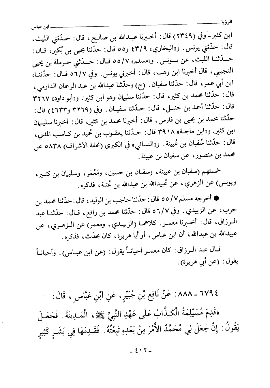 ابن كثير. وفي (٢٣٤٤) قال: أخبرنا عبد الله بن صالح، حدثني الليث، حدثني يونس. و"البُخَارِي" ٩/ ٤٣ (٧٠٠٠) و ٩/ ٥٥ (٧٠٤٦) قال: حدثنا يحيى بن بُكير، حدثنا الليث، عن يونس. قال البخاري عقب ٩/ ٤٣ (٧٠٠٠): تابعه سليمان بن كثير، وابن أخي الزهري، وسفيان بن حسين. و"مسلم" ٧/ ٥٥ (٥٩٩١) قال: حدثني حرملة بن يحيى التجيبي، أخبرنا ابن وهب، أخبرني يونس. وفي ٧/ ٥٦ (٥٩٩٢) قال: وحدثناه ابن أبي عمر، حدثنا سفيان. وفي (٥٩٩٤) قال: وحدثنا عبد الله بن عبد الرحمن الدارمي، حدثنا محمد بن كثير، حدثنا سليمان، وهو ابن كثير. و"أبو داود" ٣٢٦٧ قال: حدثنا أحمد بن حنبل، حدثنا سفيان. وفي (٣٢٦٩ و ٤٦٣٣) قال: حدثنا محمد بن يحيى بن فارس، حدثنا محمد بن كثير، حدثنا سليمان بن كثير. و (اابن ماجة) ٣٩١٨ قال: حدثنا يعقوب بن حُميد بن كاسب المدني، حدثنا سُفيان بن عيينة. و"النَّسائي" في "الكبرى" ٧٥٩٣ قال: أخبرنا محمد بن منصور. قال: حدثنا سفيان.