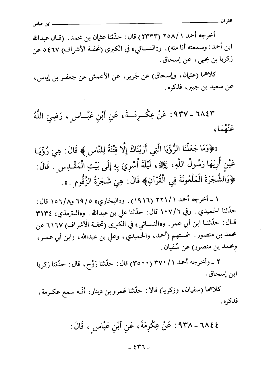 ٦٨٤٣ - عَنْ عِكْرِمَةَ عَنِ ابْنِ عَبَّاسٍ - رضى الله عنهما -؛