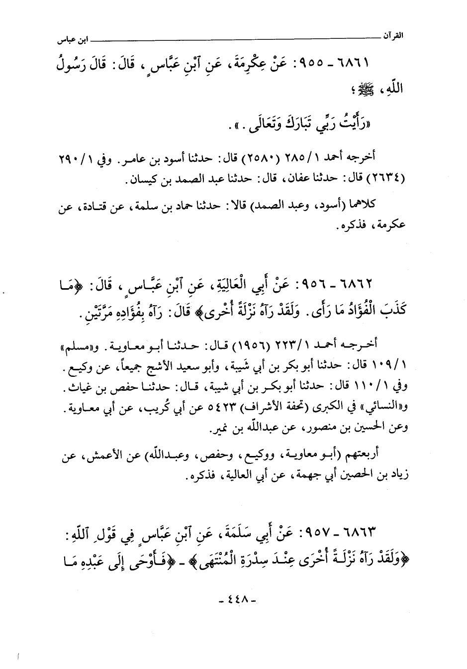 ٦٨٦٢ - عن أبي العالية، عن ابن عباس، قال: (ما كذب الفؤاد ما رأى. ولقد رآه نزلة أخرى) قال: رآه بفؤاده مرتين.