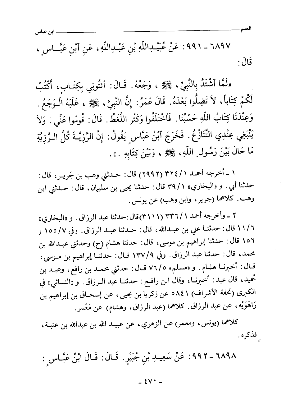 ٦٨٩٨ - عن سَعِيدِ بْنِ جُبَيْرٍ قَالَ قَالَ ابْنُ عَبَّاسٍ