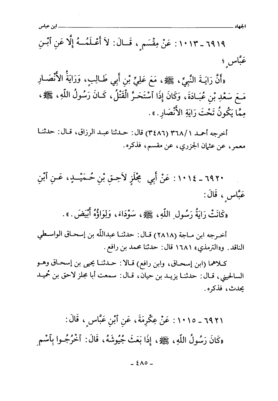 ٦٩٢١ - عَنْ عِكْرِمَةَ عَنِ ابْنِ عَبَّاسٍ قَالَ: